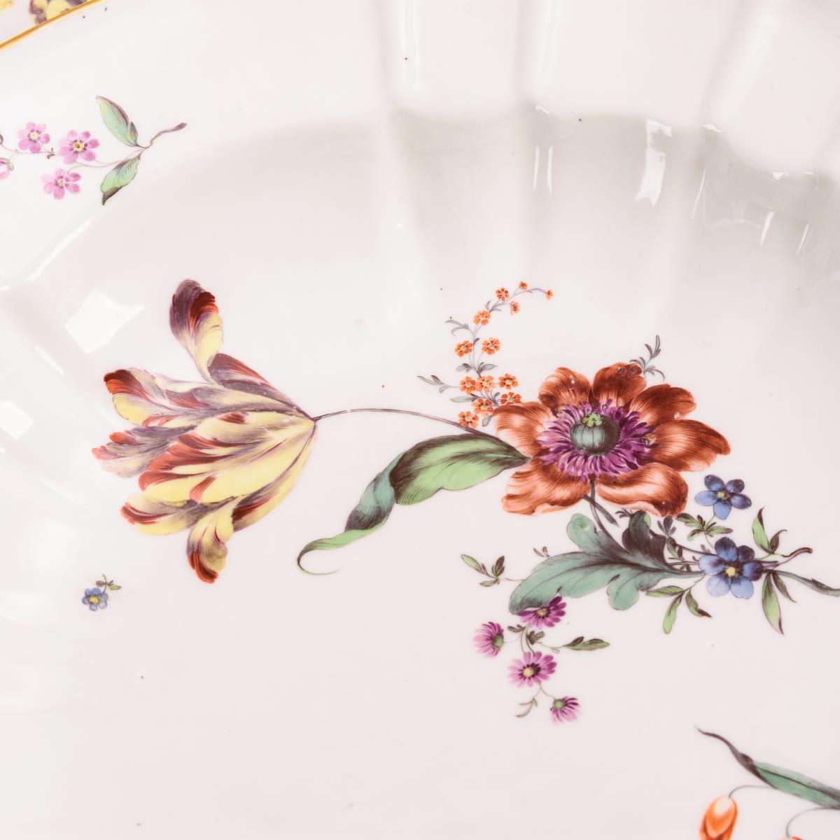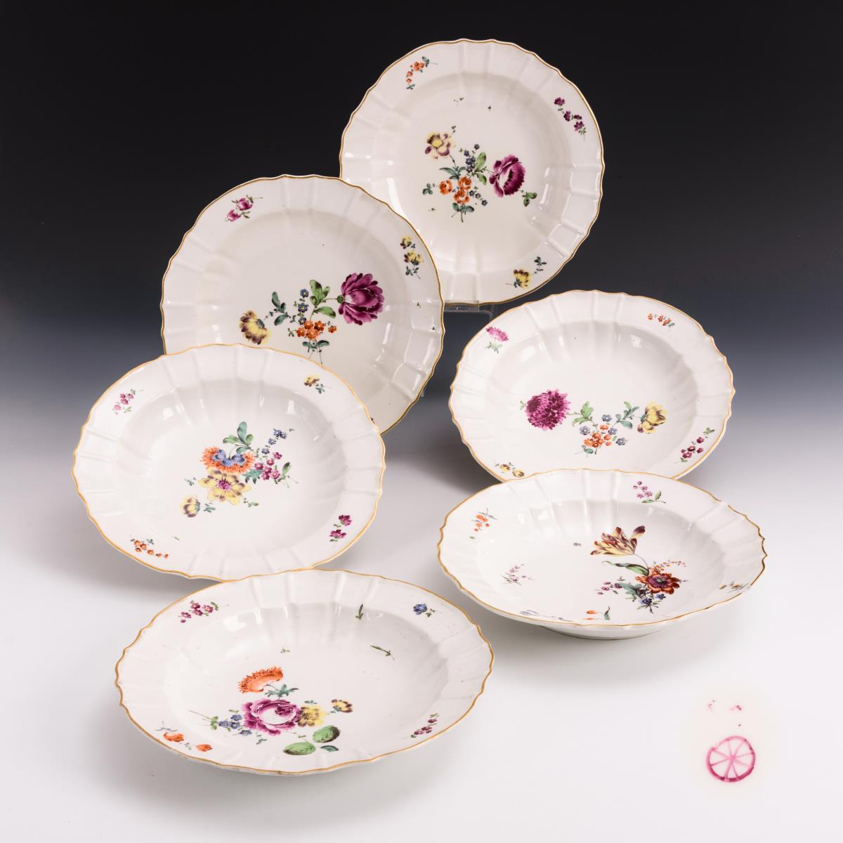 6 Suppenteller mit Blumenmalerei. Höchst.