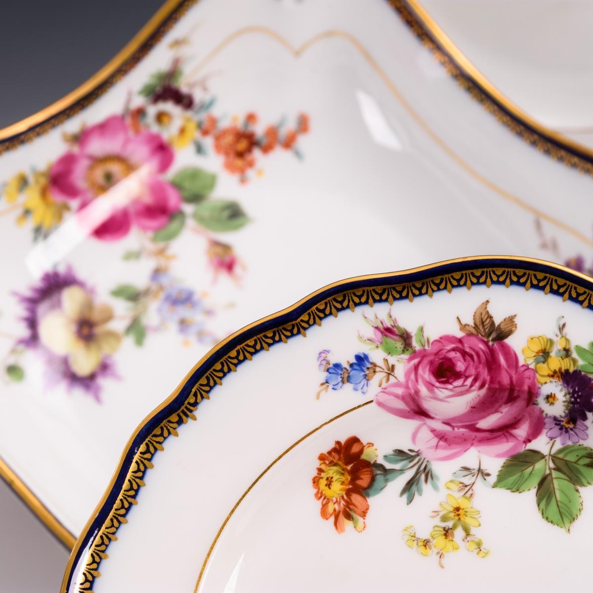 Polychrome Blumenmalerei, Kobaltrand, Goldstaffage.