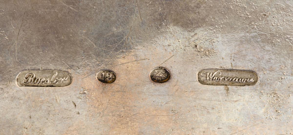 Meisterstempel Roesler / 12 Lot / dreieckiges Beschauzeichen / "Warszawie" gepunzt. 1. Hälfte 19. Jh. Polen.