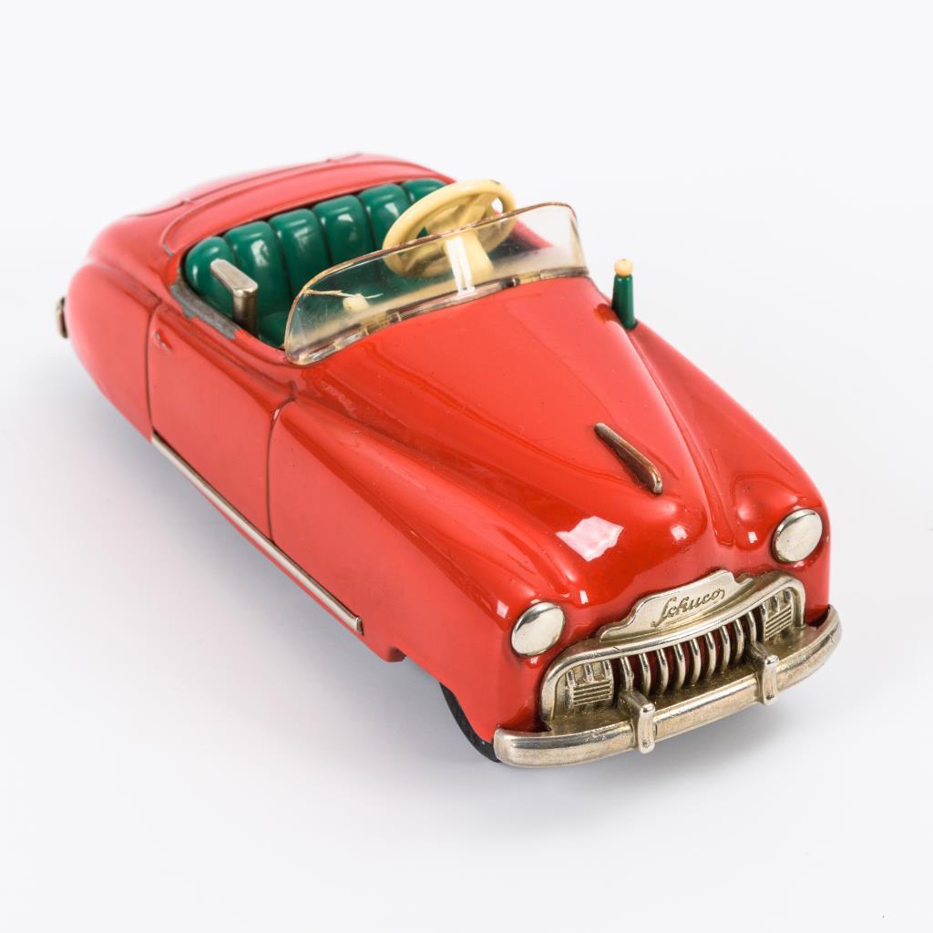 Rotes Auto mit intaktem Werk und funktionierendem "Radio". Wenige, minimale Lackdefekte.