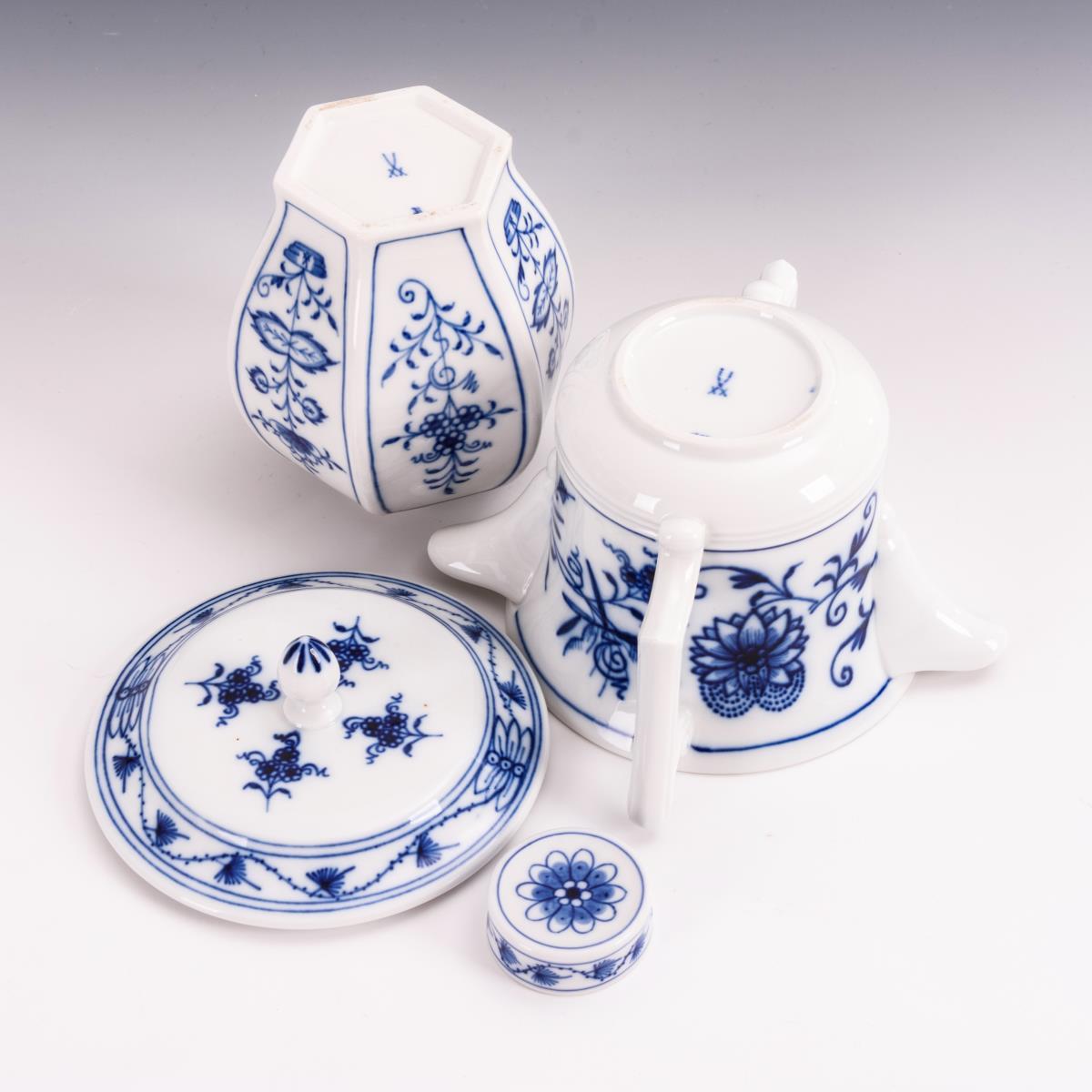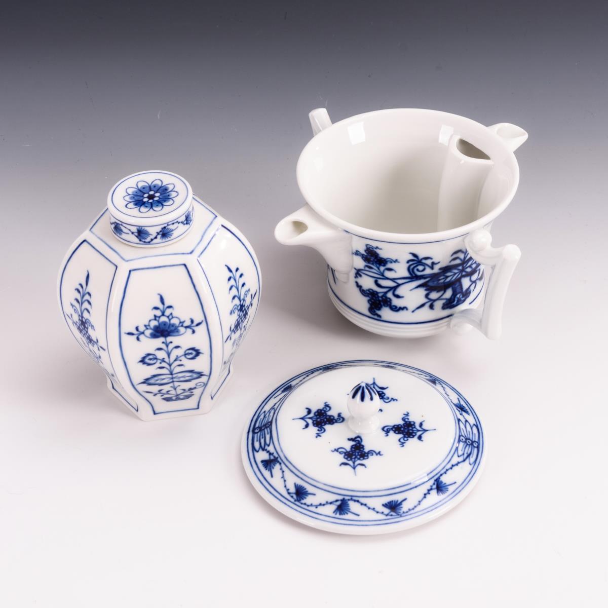 Zwiebelmuster-Teedose und -Sauciere. Meissen.