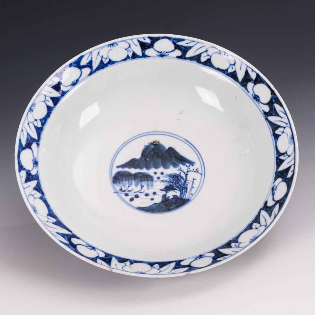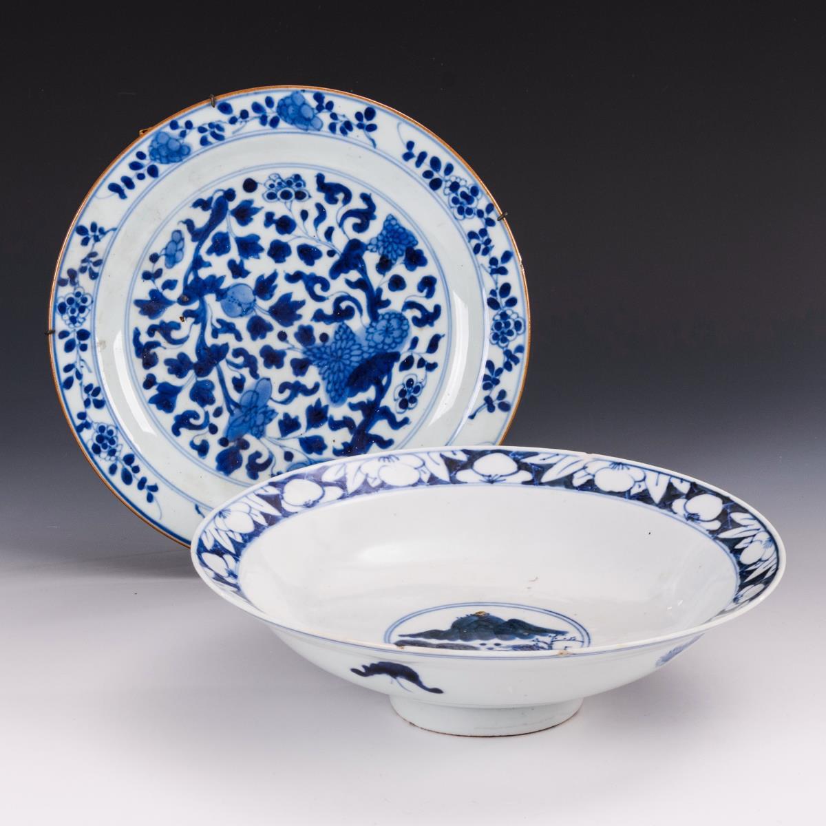 Porzellan mit Unterglasur-Blaumalerei. Ø 22 und 24 cm.