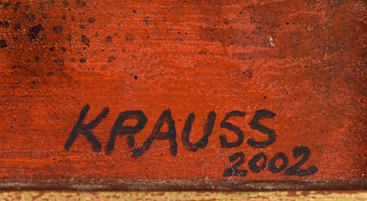 Mischtechnik mit figürlichen Metallapplikationen. Rechts unten signiert, verso betitelt. Datiert: 2002.