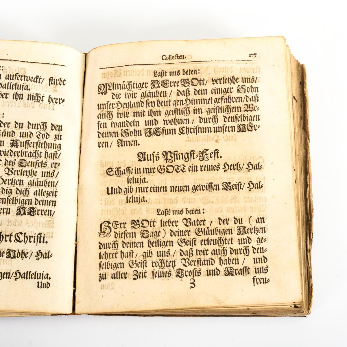Titel, 374, 8 Seiten. Eingeheftete 8 Seiten handschriftliches "Taufformular" sowie am Ende 45 handschriftliche Seiten wohl historischen Inhaltes. Ledereinband. Stärkere Gebrauchsspuren, Bünde locker.