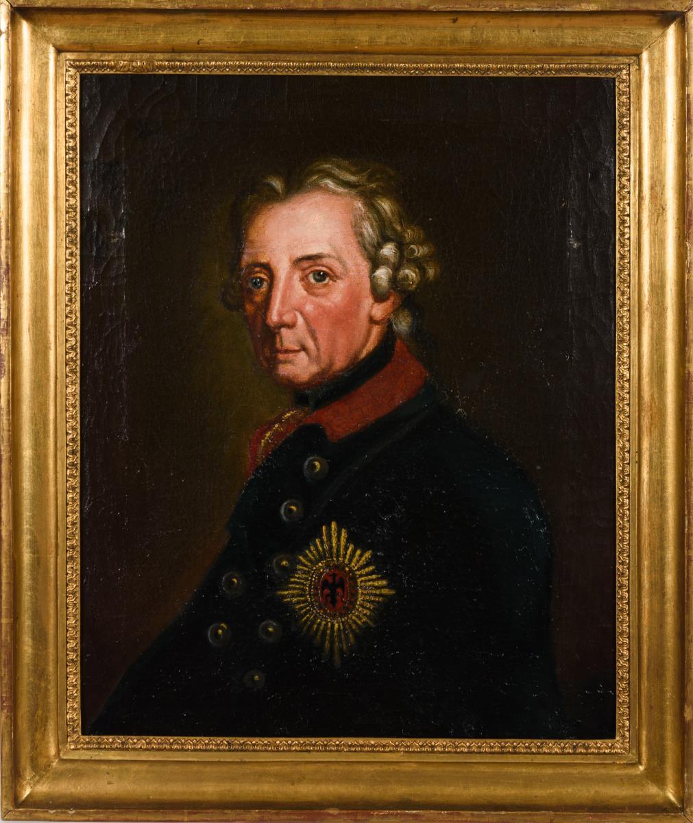 Nach dem Vorbild Anton Graffs gemaltes Bildnis des Preußischen Königs. Altersspuren.