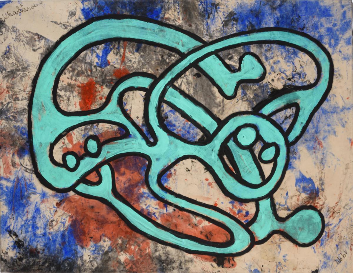 Abstrakte Komposition mit blauer Figur