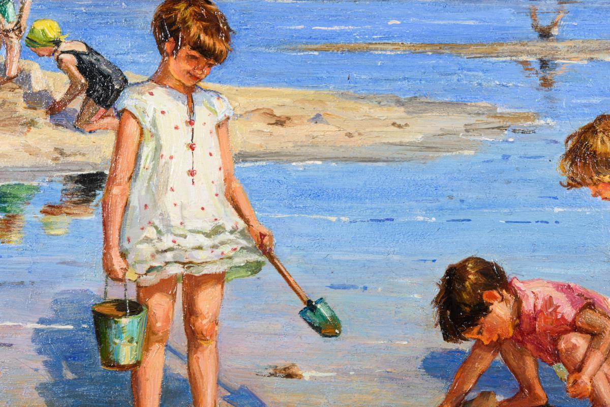 Kinder beim Muscheln sammeln