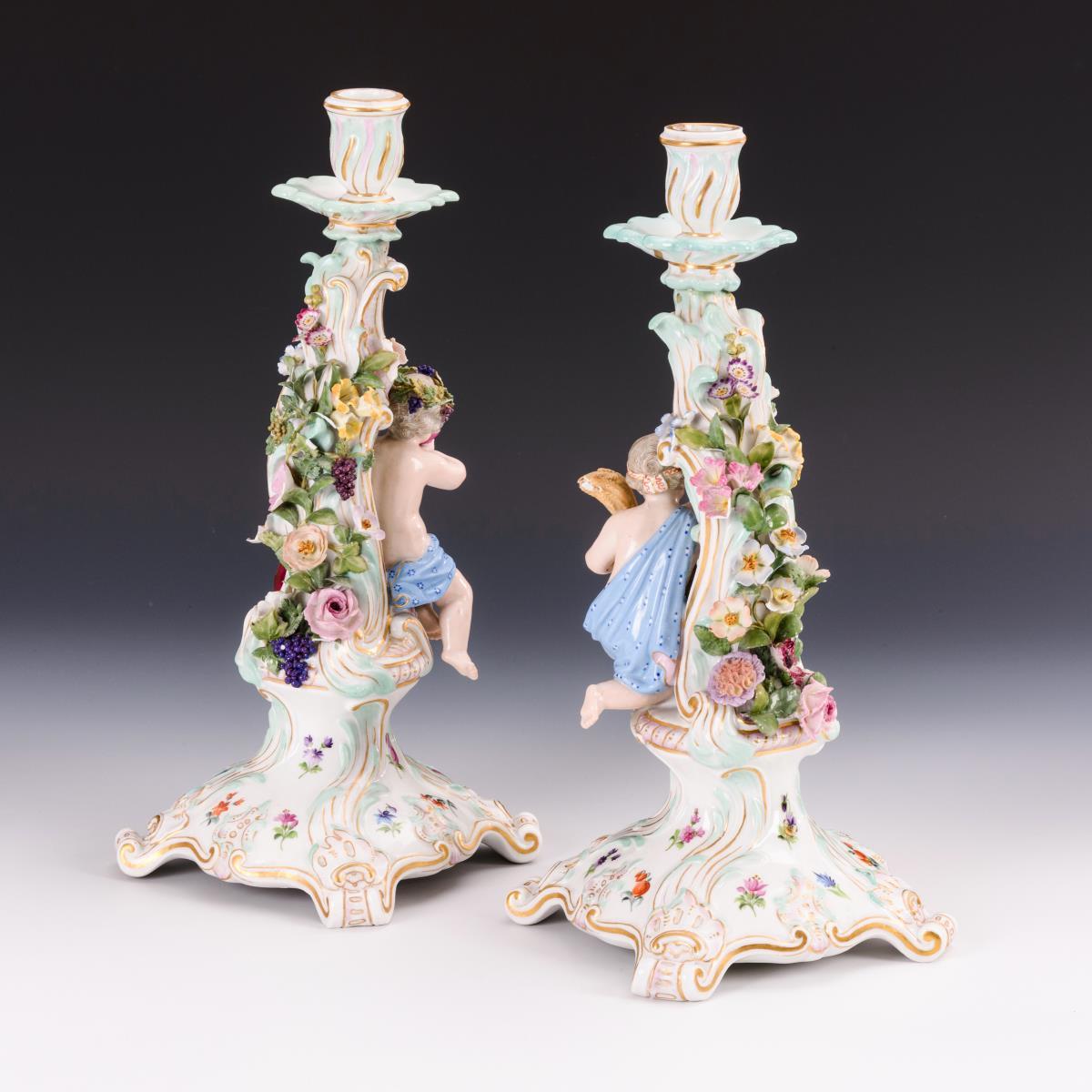 Paar Leuchter mit Jahreszeitenallegorien. Meissen.