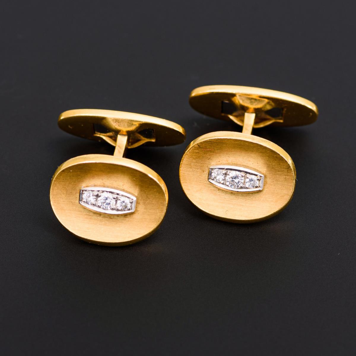 Solide Manschettenknöpfe mit je 3 gefassten Brillanten. Kippknebel.