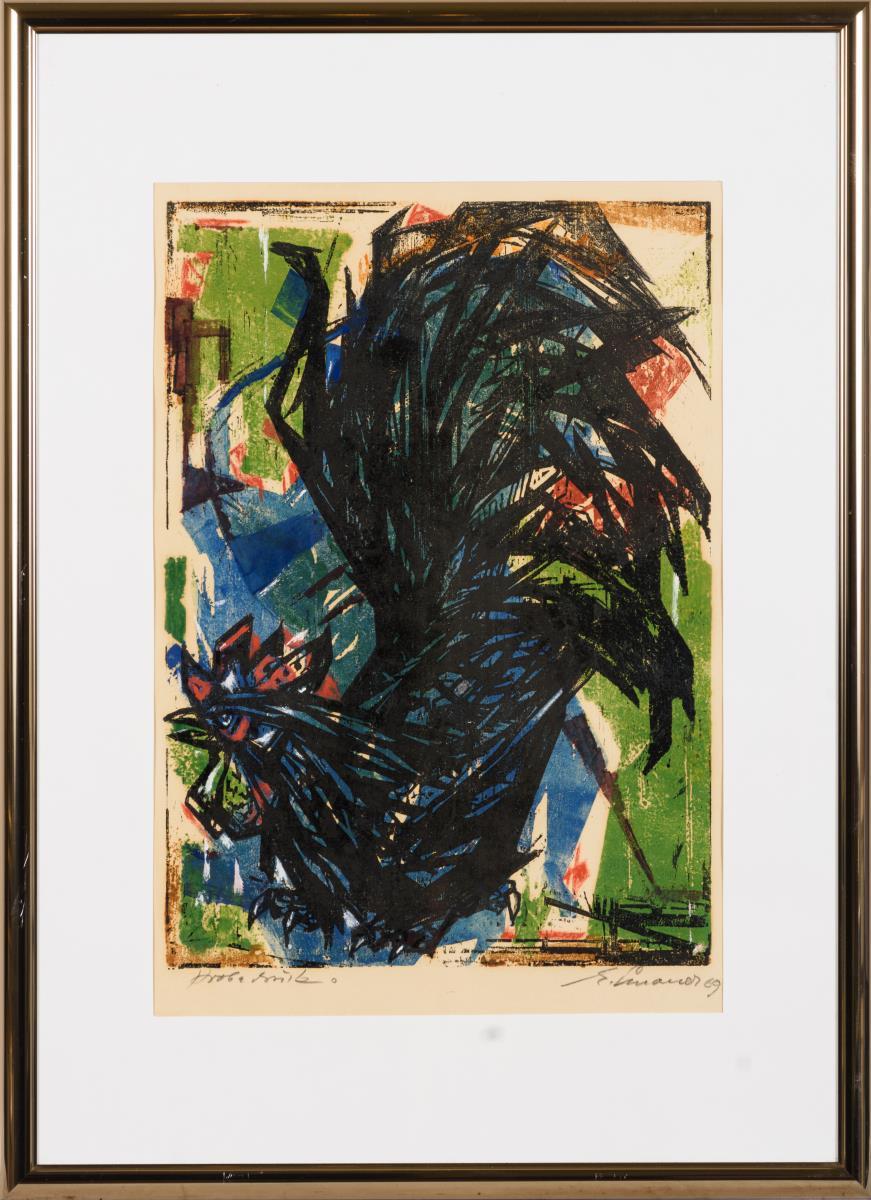 Farblinolschnitt. Bleistiftsignatur. [19]69. Probedruck.