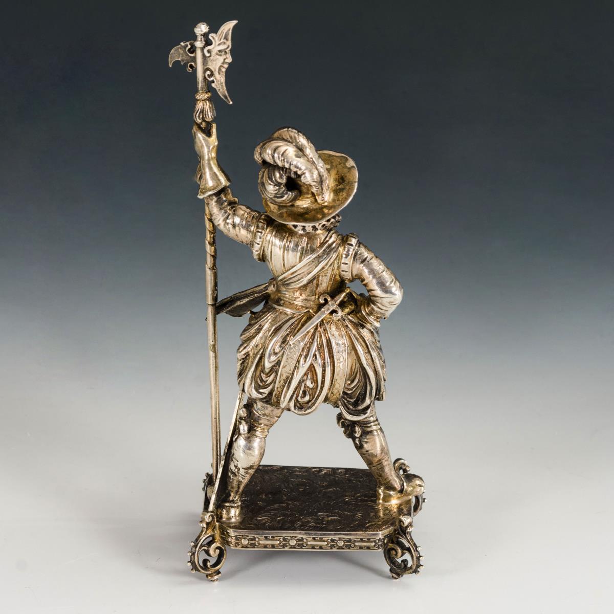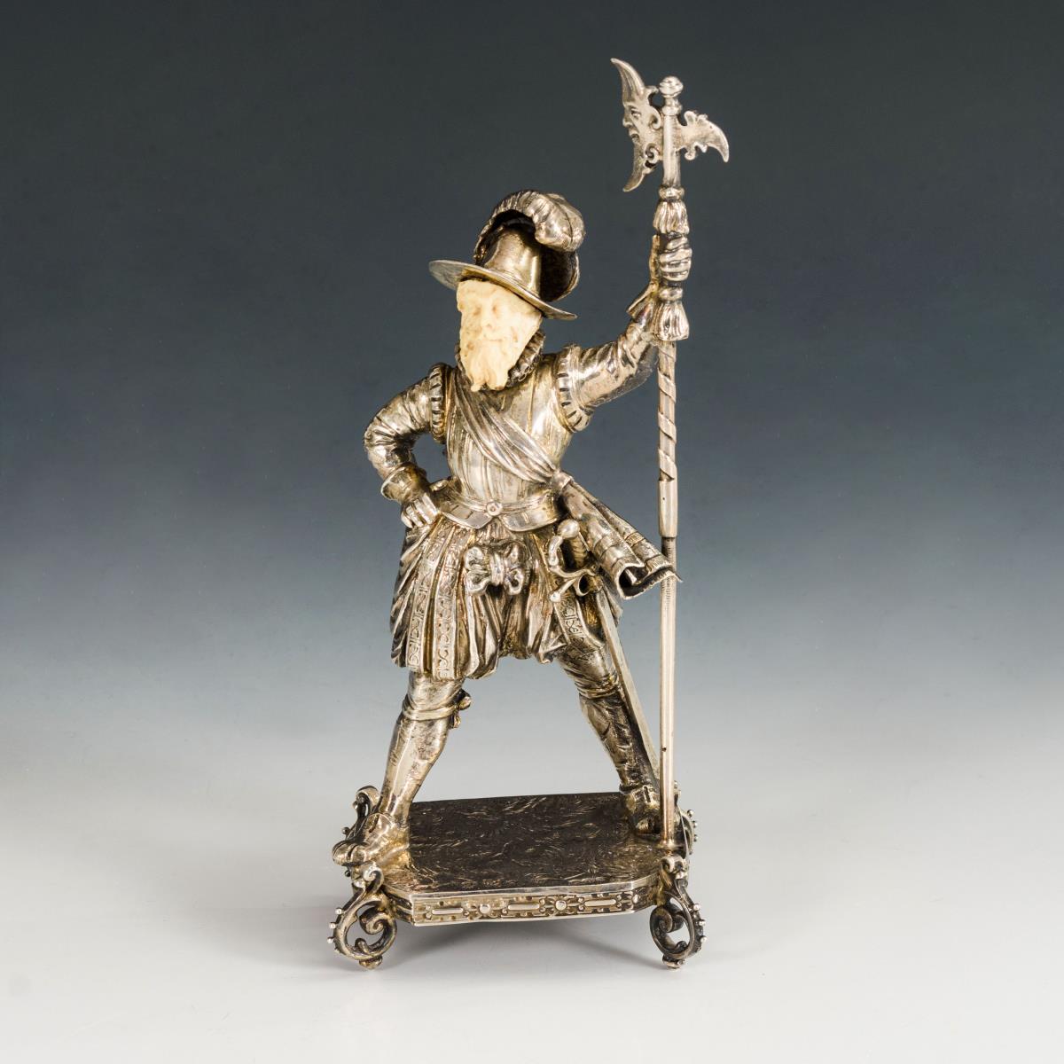 Historismus-Figur: Wachmann mit Hellebarde. B. Neresheimer & Söhne.