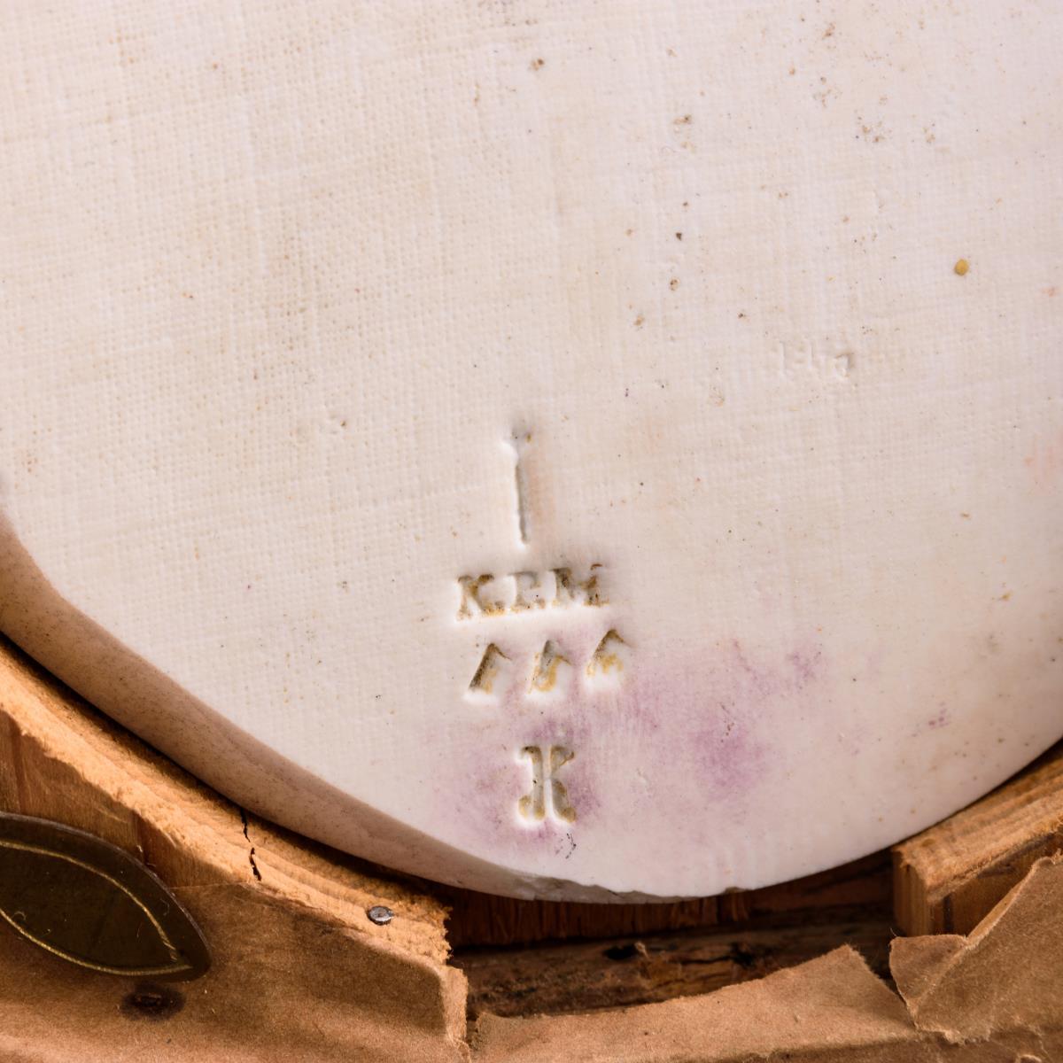 Polychrome Malerei. L 15,5 cm, im goldbronziertem Holzrahmen, 25 x 21,5 cm.