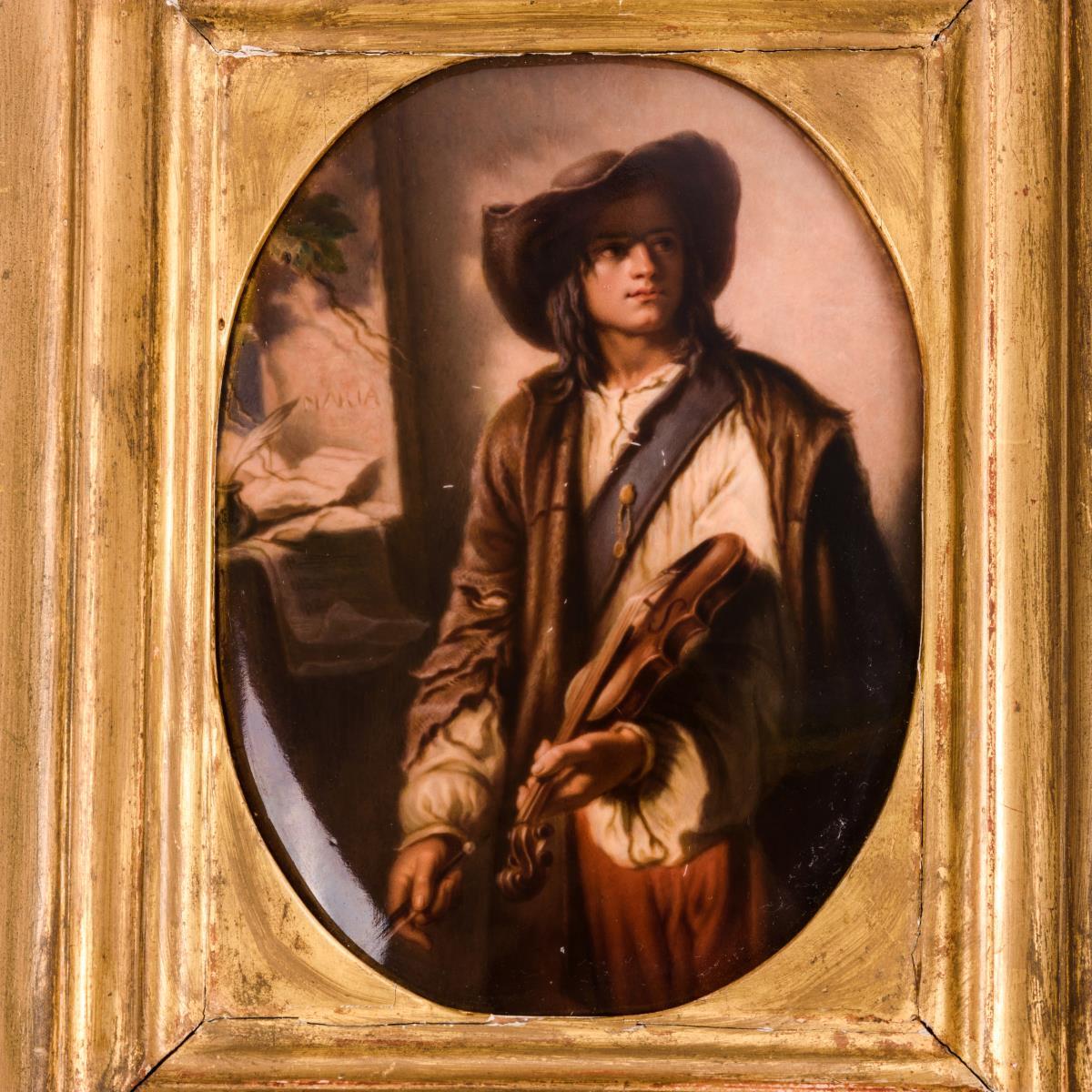 Porzellangemälde: Jüngling mit Violine. KPM Berlin.
