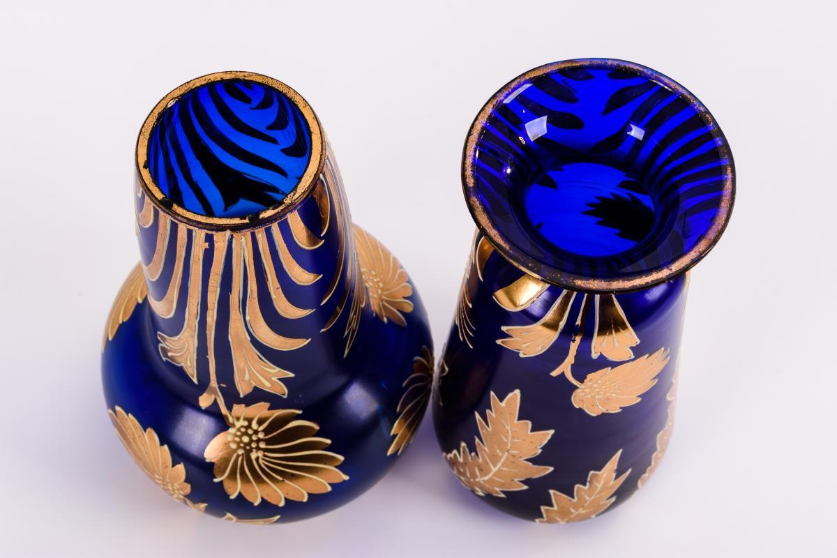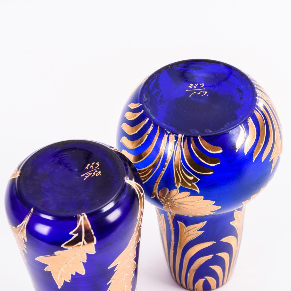 Kobaltblaues Glas, cremefarben konturierte Goldmalerei. H 16,5 cm.