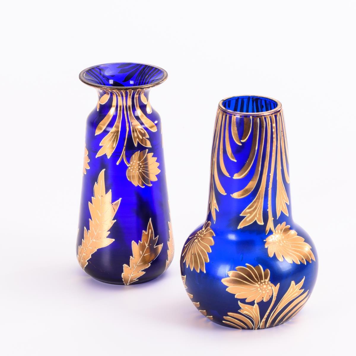 2 Kobaltvasen mit Goldmalerei.