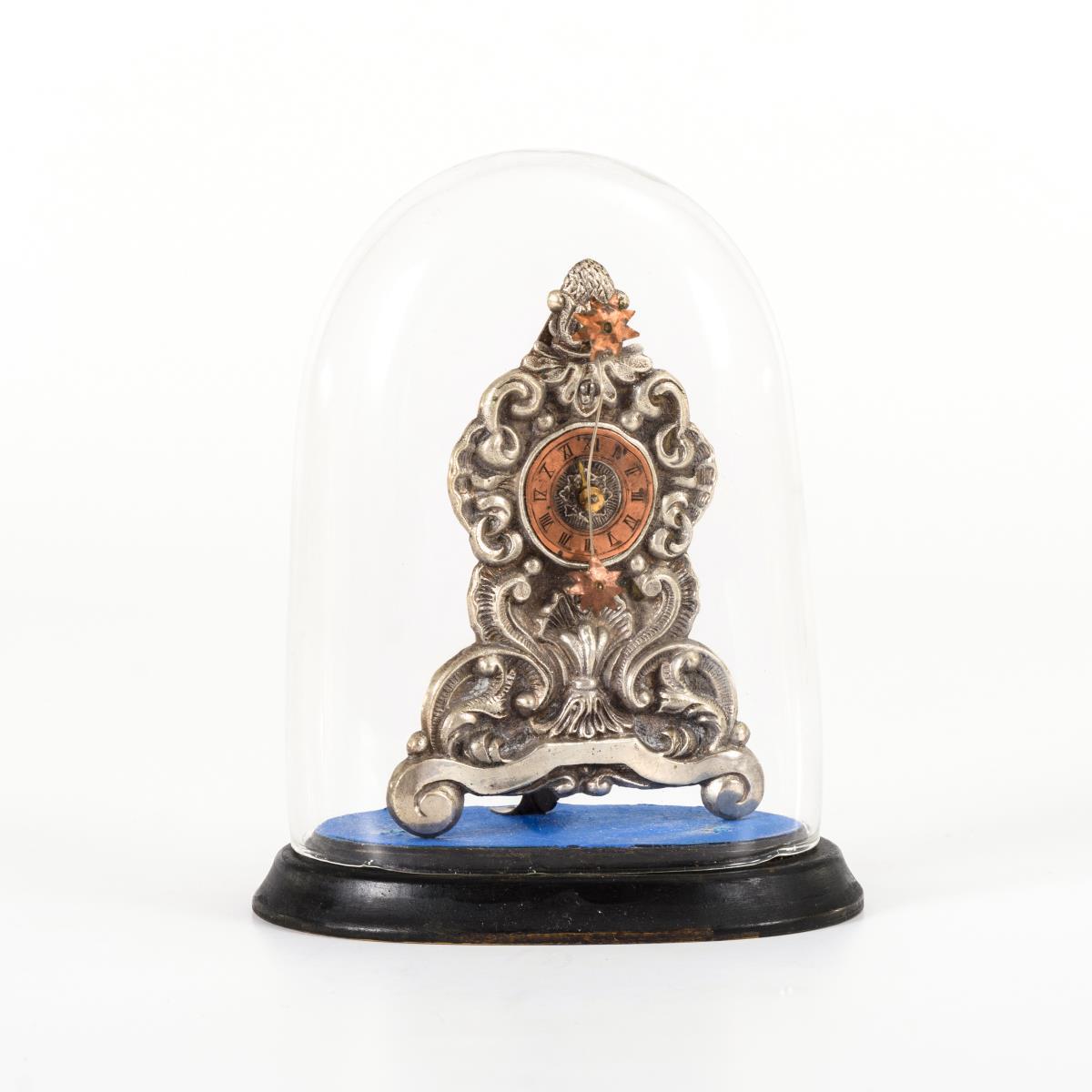 Kupfer-Galvanoplastik, silberfarbener Metallüberzug. H mit Glasdom max. 14 cm.