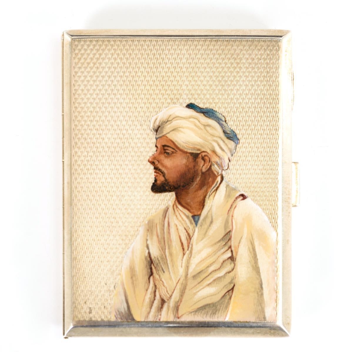 Fein guillochiertes Etui mit Emaildarstellung eines Mannes mit Turban. Leichte Gebrauchsspuren.