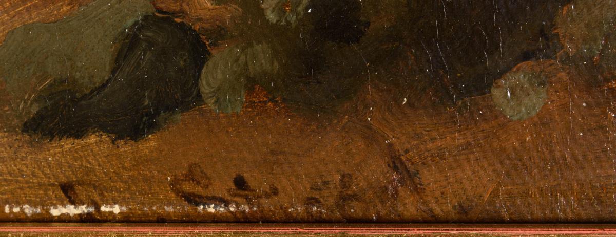 Öl/Leinwand. Rechts unten teils unterm Rahmen signiert.