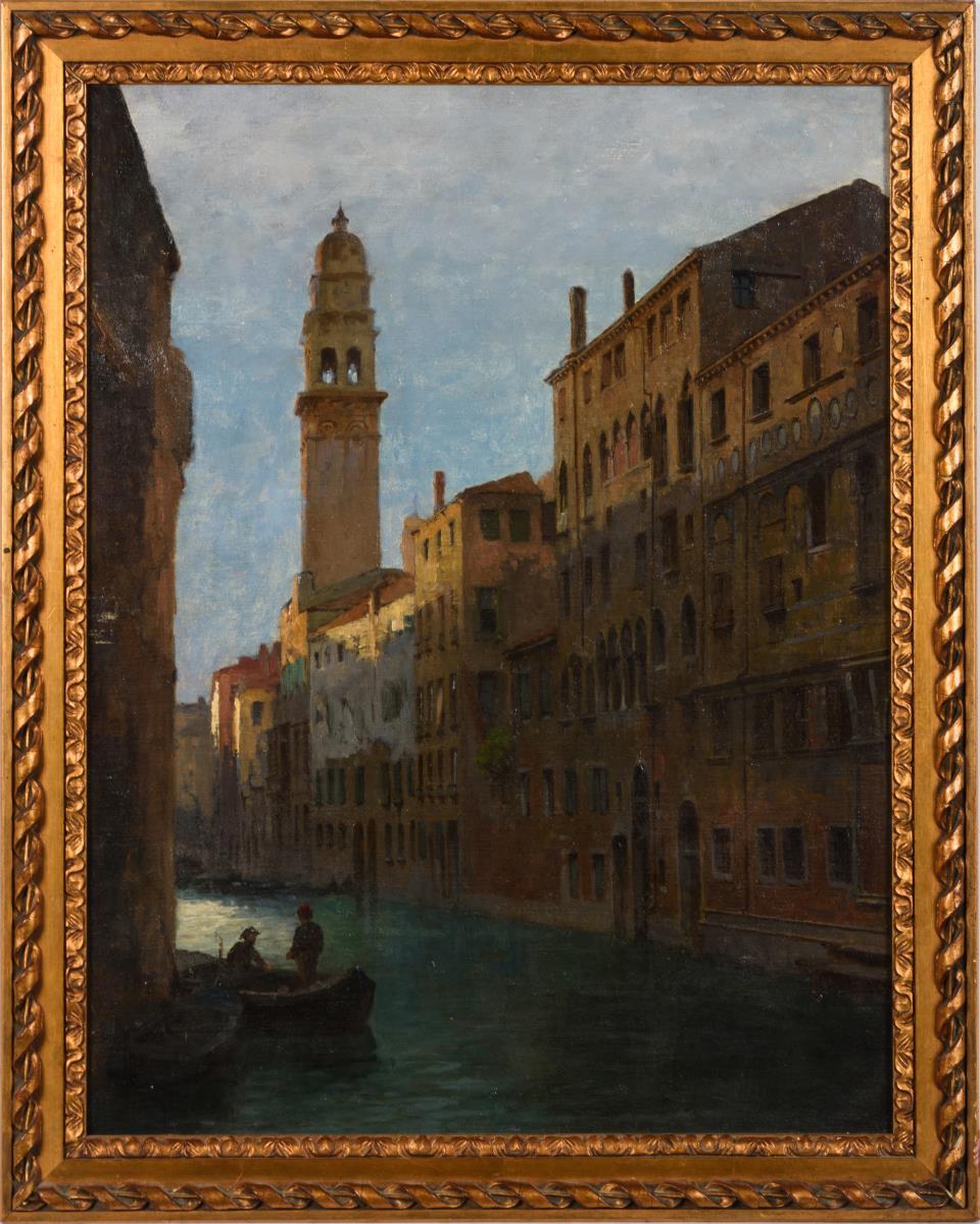 Seitenkanal in der italienischen Stadt bei niedrig stehender Sonne.