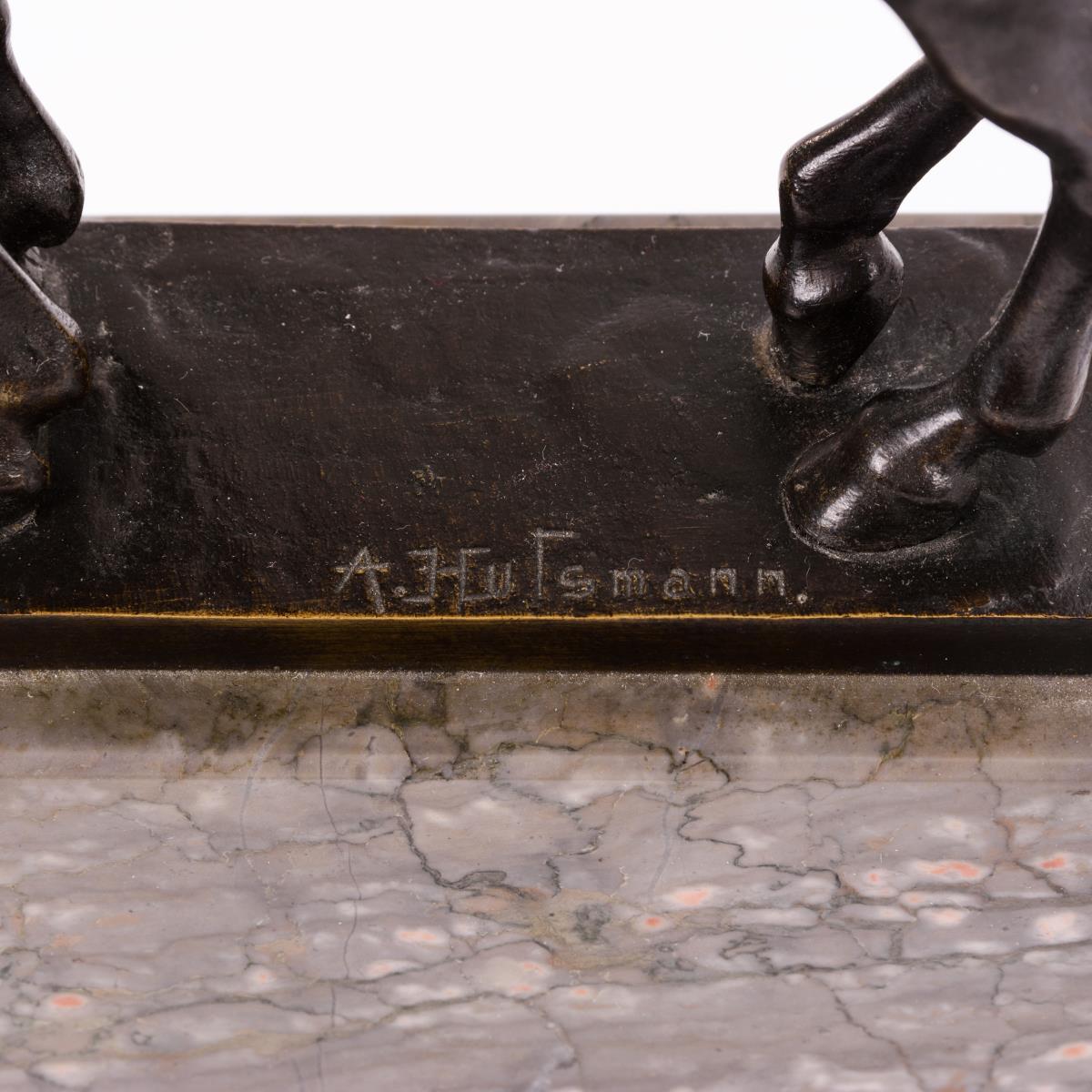 Bronze patiniert. Bezeichnet. H 21 / 33 cm (ohne Speer).
