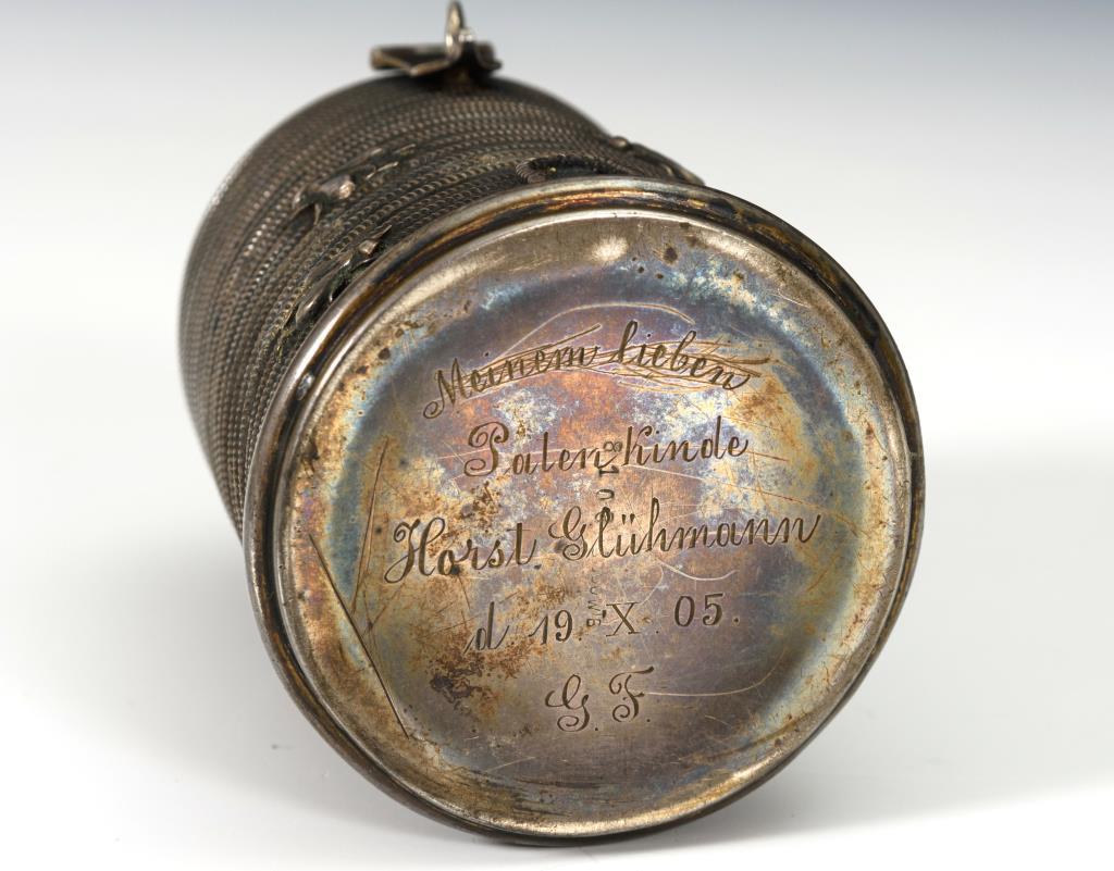 Unterseitig graviert: "Meinem lieben Patenkinde Horst Glühmann d. 19. X. 05. G.F.". Altersspuren.