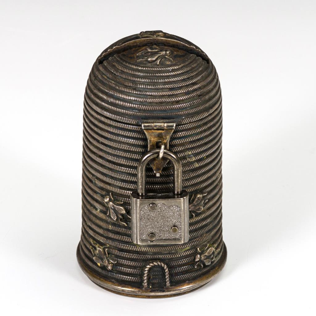 Silberne Spardose in Form eines Bienenkorbs