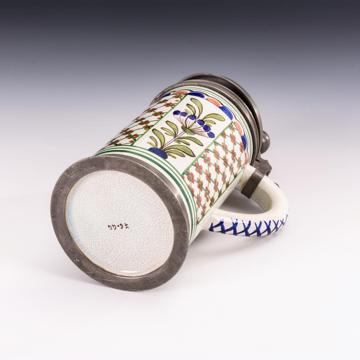Historismus-Krug mit Zinndeckel und Zinnstandring.
