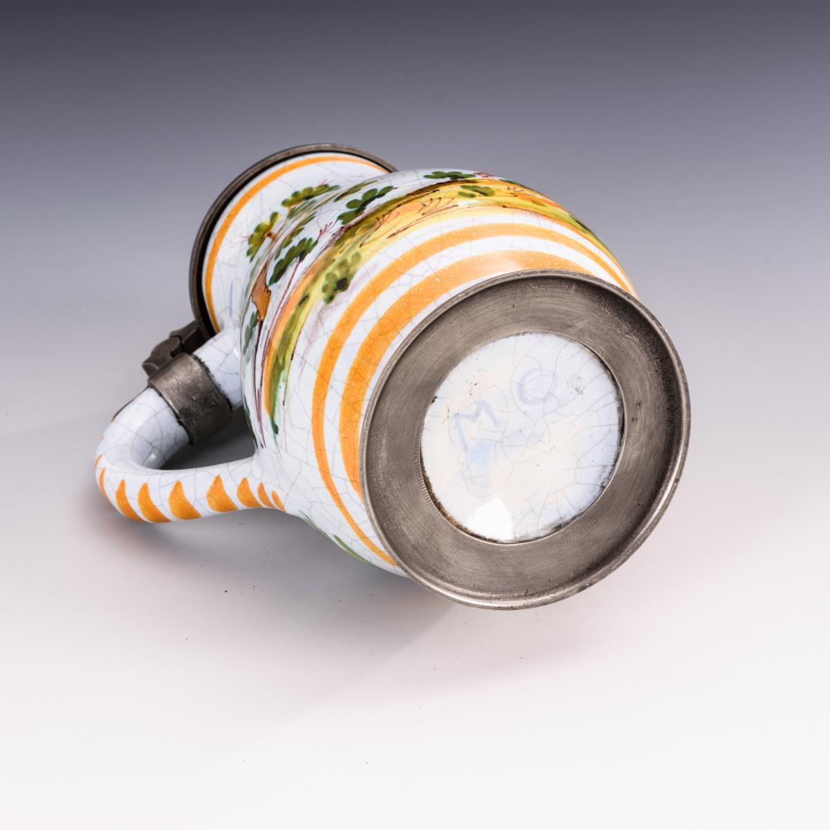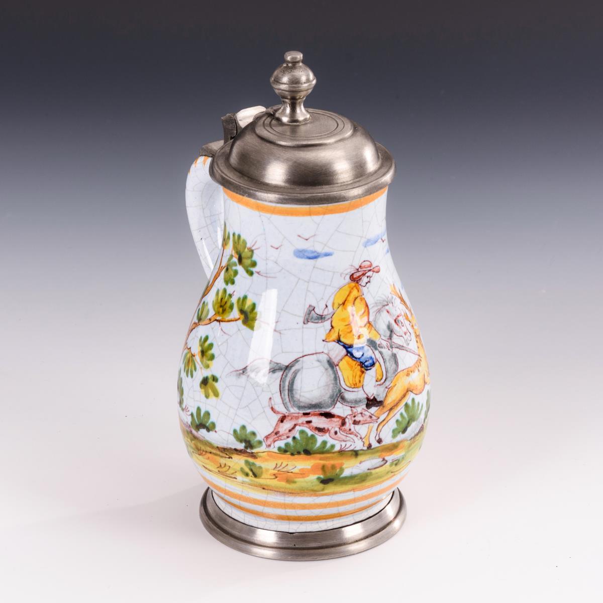 Kleiner Fayence-Birnkrug mit Jagdmotiv.