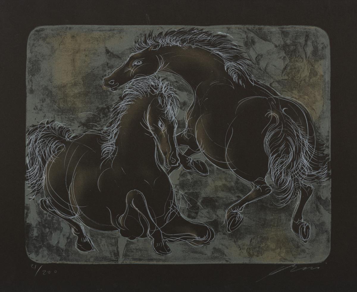 Farblithografie auf schwarzem Papier. Kreidesignatur. Exemplar: 21/200.