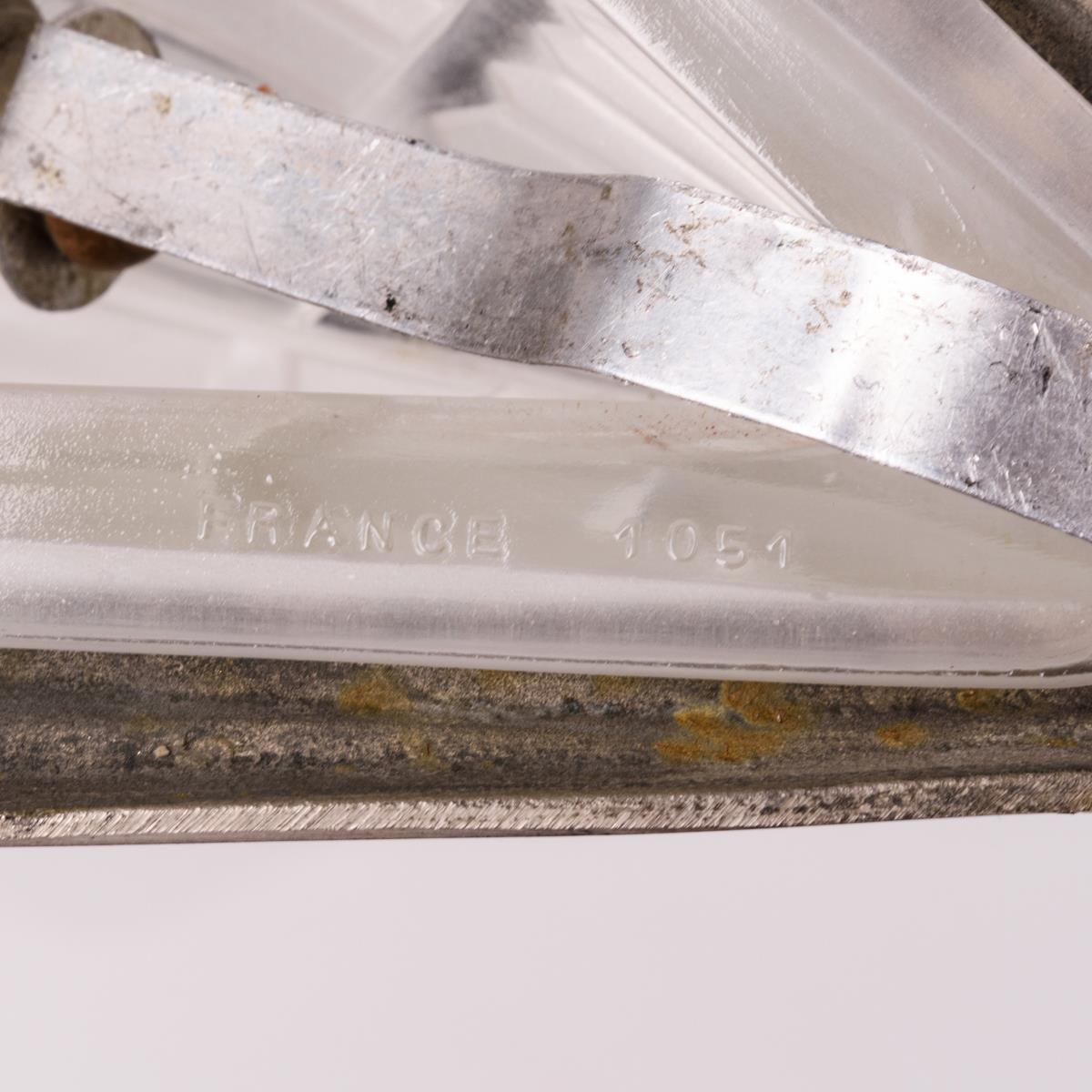 Farbloses, formgepresstes und mattiertes Glas. L gesamt 32 cm.
