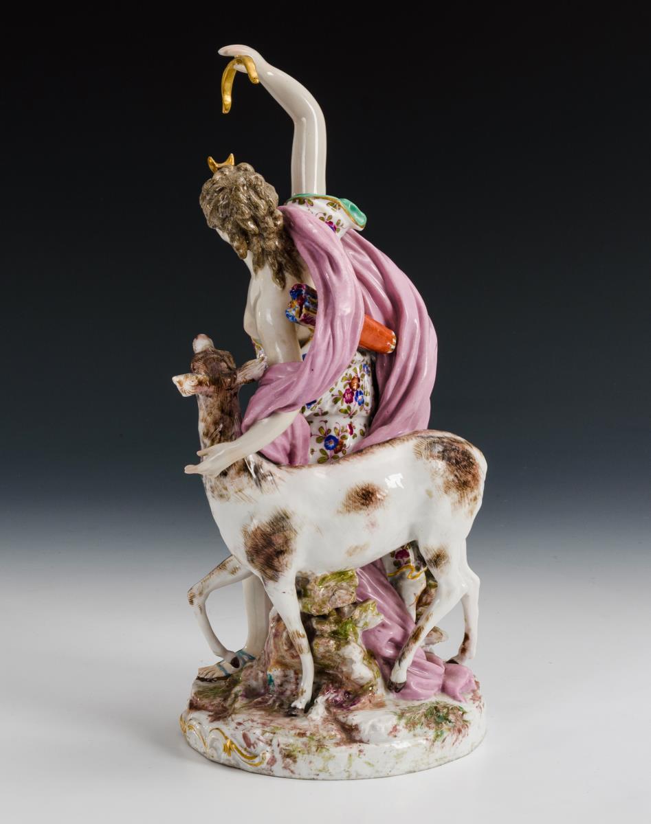 Plastik der Jagdgöttin Diana mit Bogen und Hirschkuh. Linke Hand, rechter Arm und Bogen restauriert.