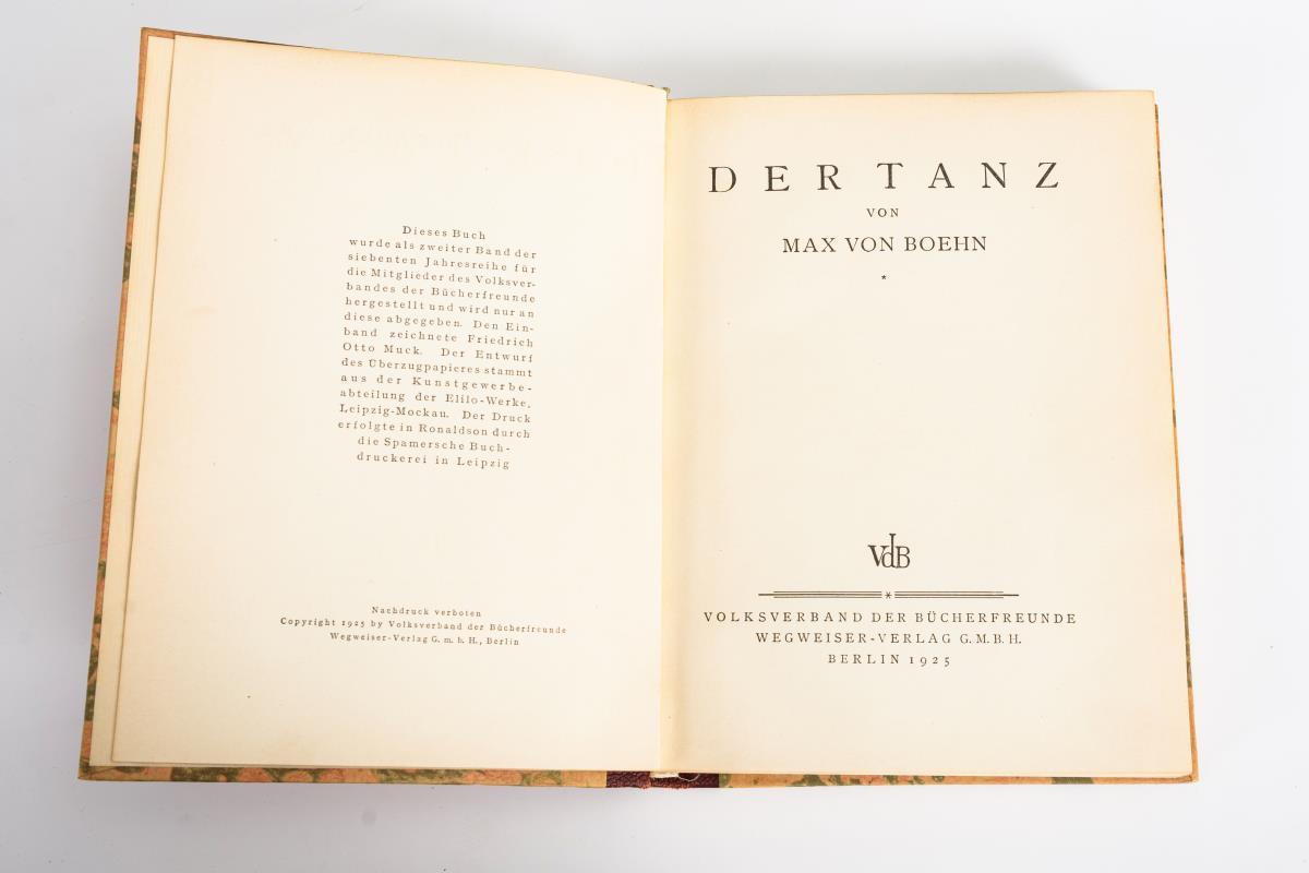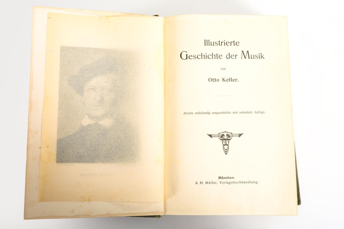 Keller, Otto: "Illustrierte Geschichte der Musik", 3. vollständig umgearbeitete und vermehrte Auflage. 824 Seiten, 24 x 17 cm / Max von Boehn: "Der Tanz", Berlin 1925, 268 Seiten, Halbledereinband, 22 x 16 cm.