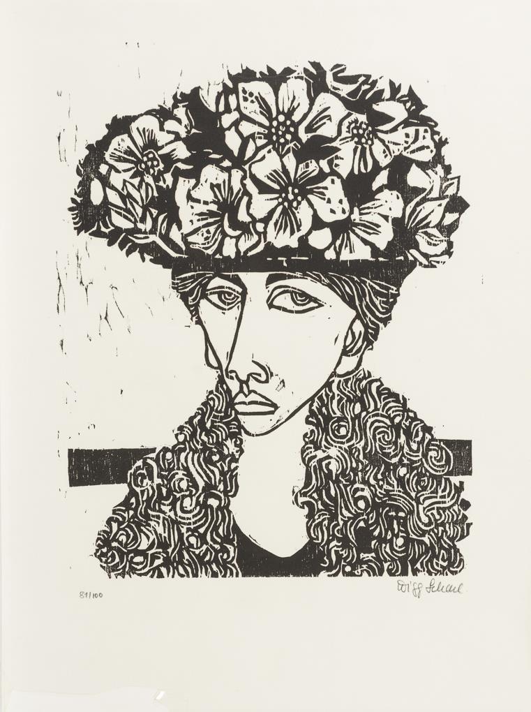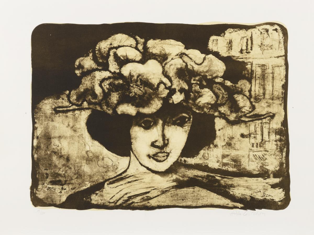 Castellon, Hilda: "Mujer con Sombrero", Farblithografie, Blatt: 56 x 76,5 cm, Exemplar: 14/50, am Rand mit Knicken | Scharl, Ludwig: "Frau mit Blumenhut", Holzschnitt, Stock: 48 x 39 cm, Blatt: 67,5 x 50 cm, Exemplar: 81/100.