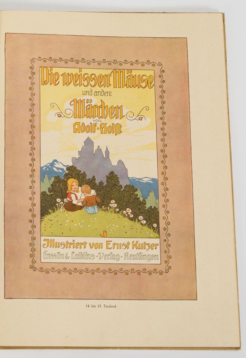 Holst, Adolf / Kutzer, Ernst: "Die weissen Mäuse und andere Märchen". Reutlingen (nach 1915), 14.-17. Tausend, 36 Seiten. / dieselben: "Hans Wundersam. Ein Wintermärchen". Alfred Hahn's Verlag (1910), 45.-60. Tausend. 22 Seiten. / dieselben: "Der Weihnachtsstern. Ein Wintermärchen". Alfred Hahn's Verlag. 32 Seiten, vorletzte Seite mit kleinerem Ausriss. Alle Bücher im Halbleineneinband mit schwachen Nutzungsspuren, ca. 30 x 22 cm.