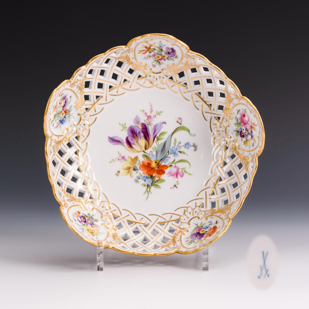 Durchbruchschale mit Blumenmalerei. Meissen.