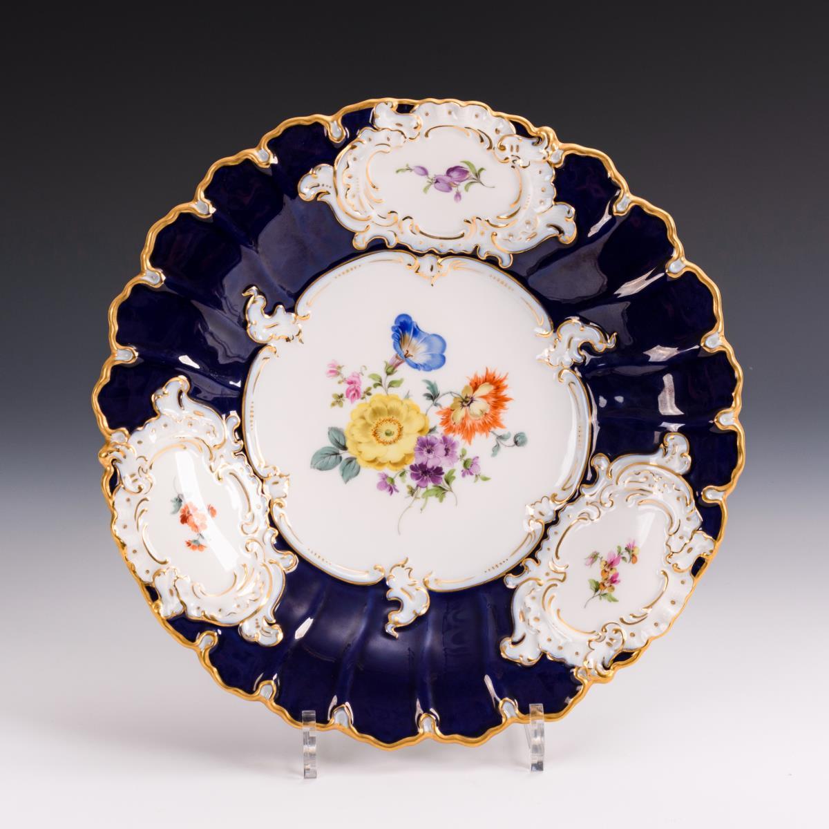 Prunkteller mit Kobaltfond. Meissen.