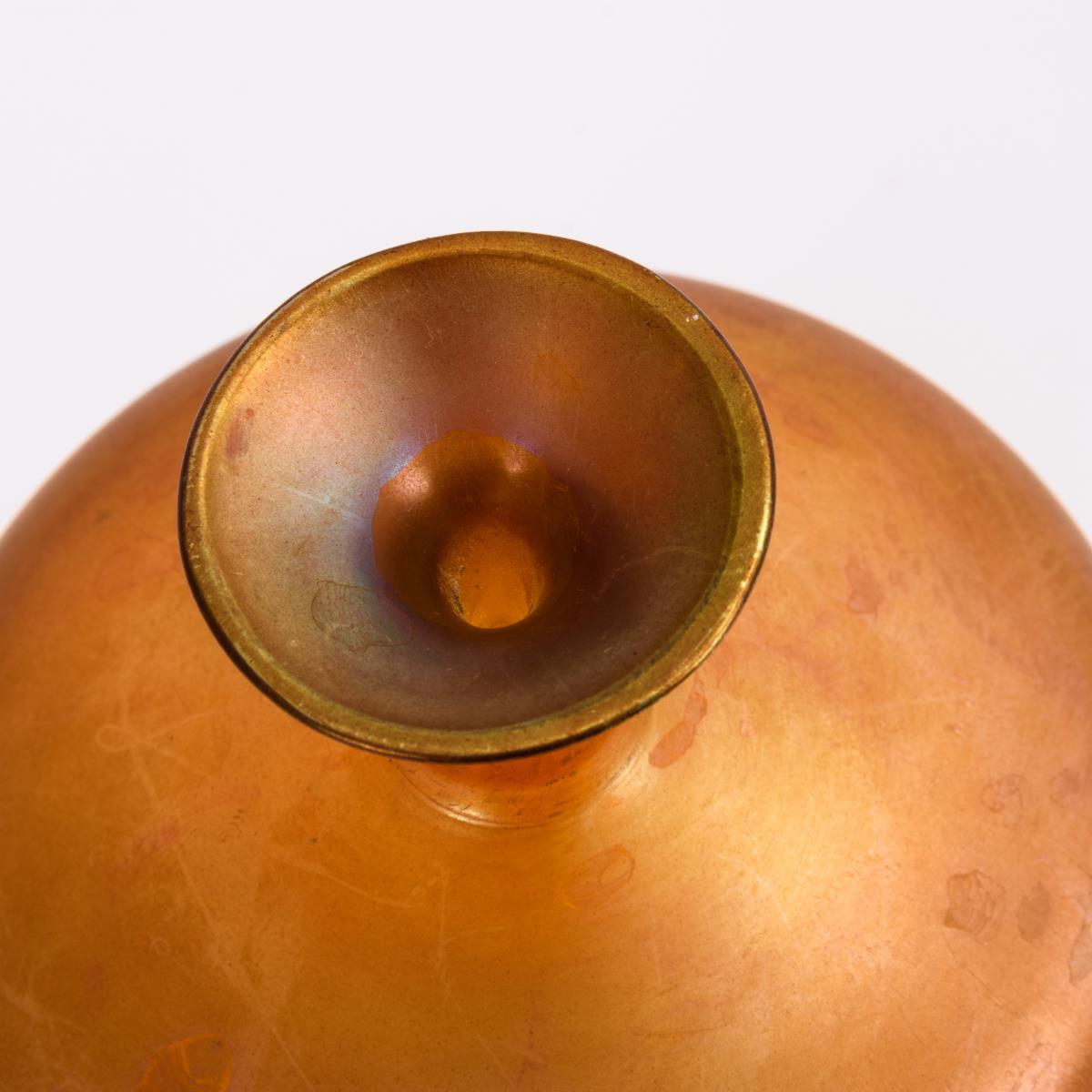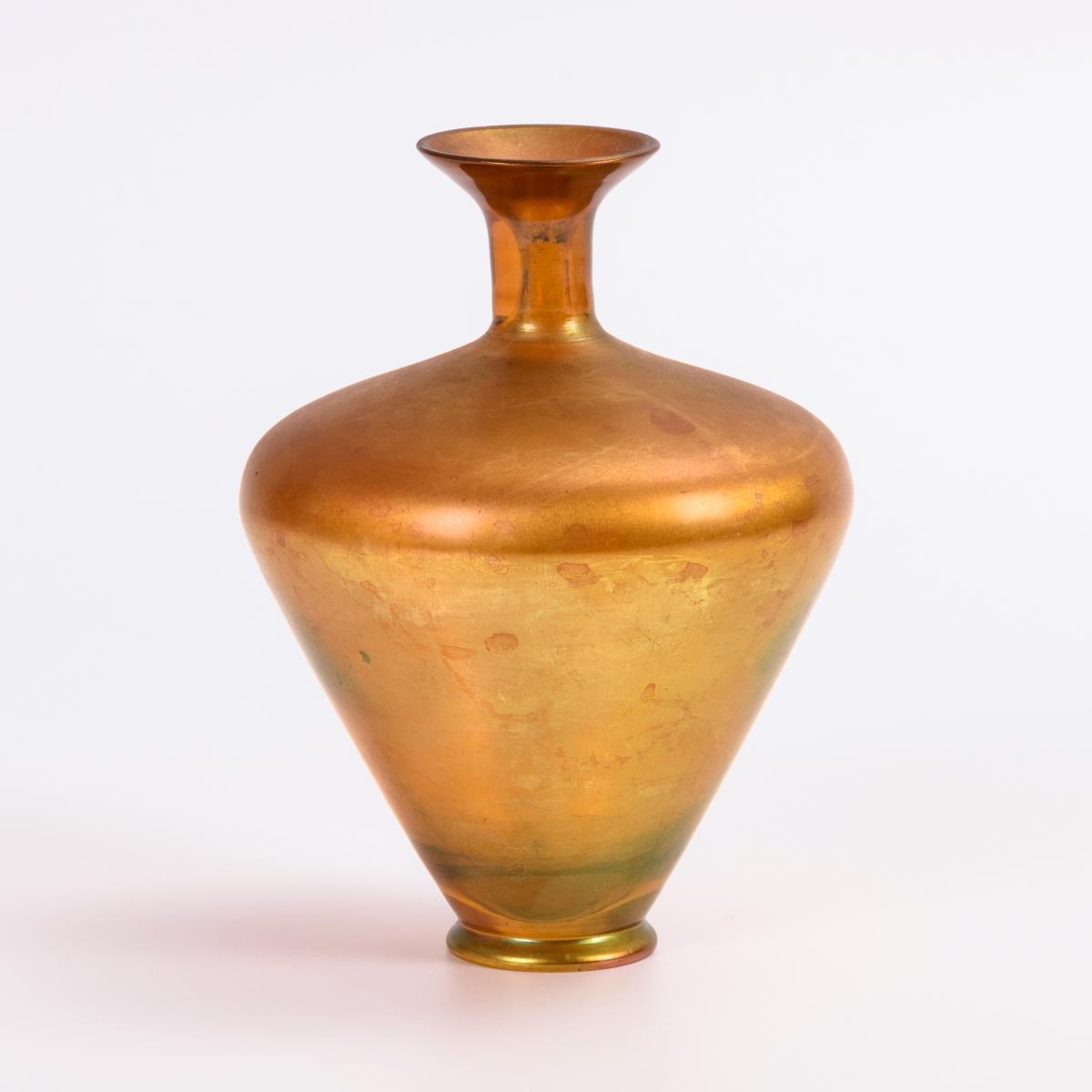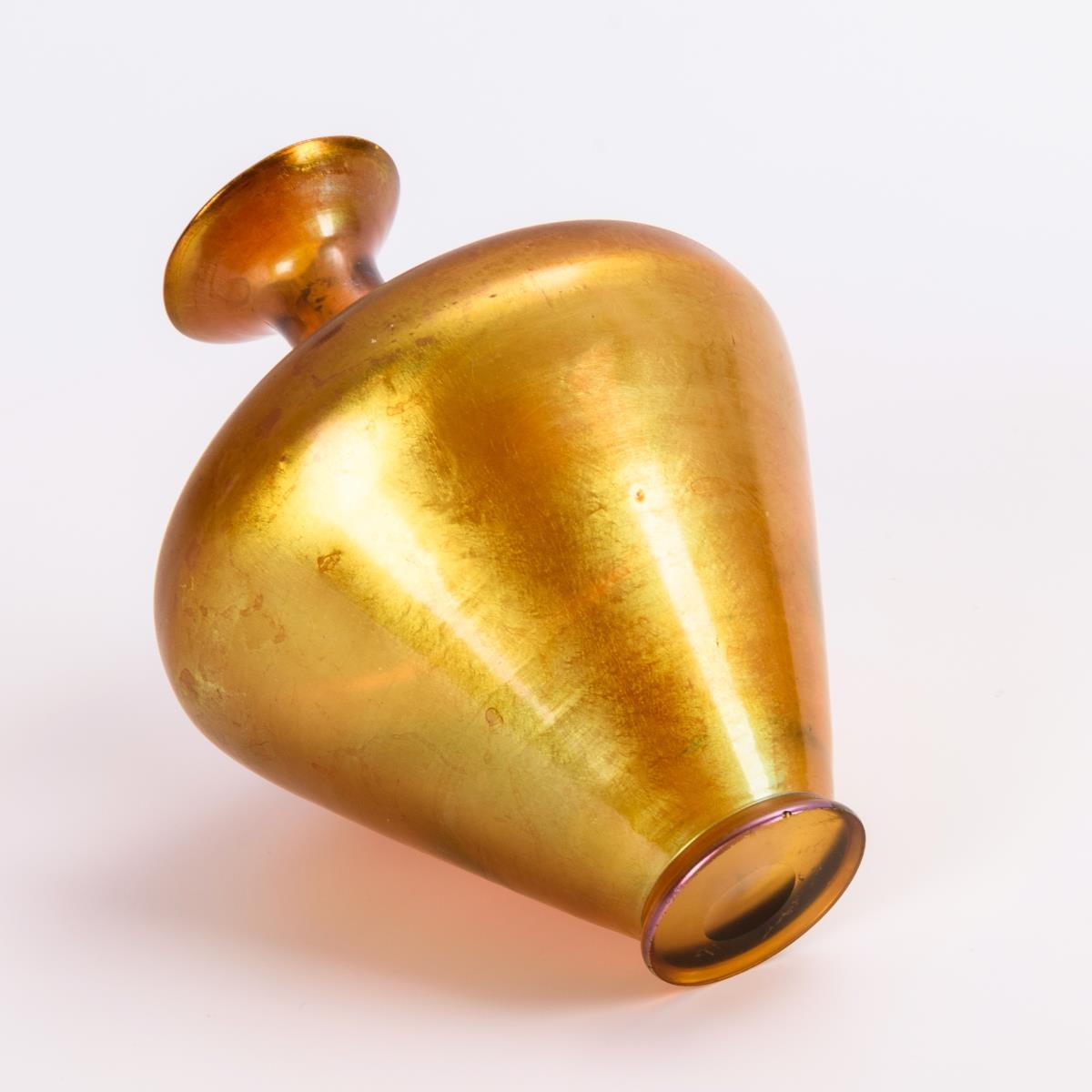 Bernsteinfarbenes, irisiertes Glas. H 15,5 cm.