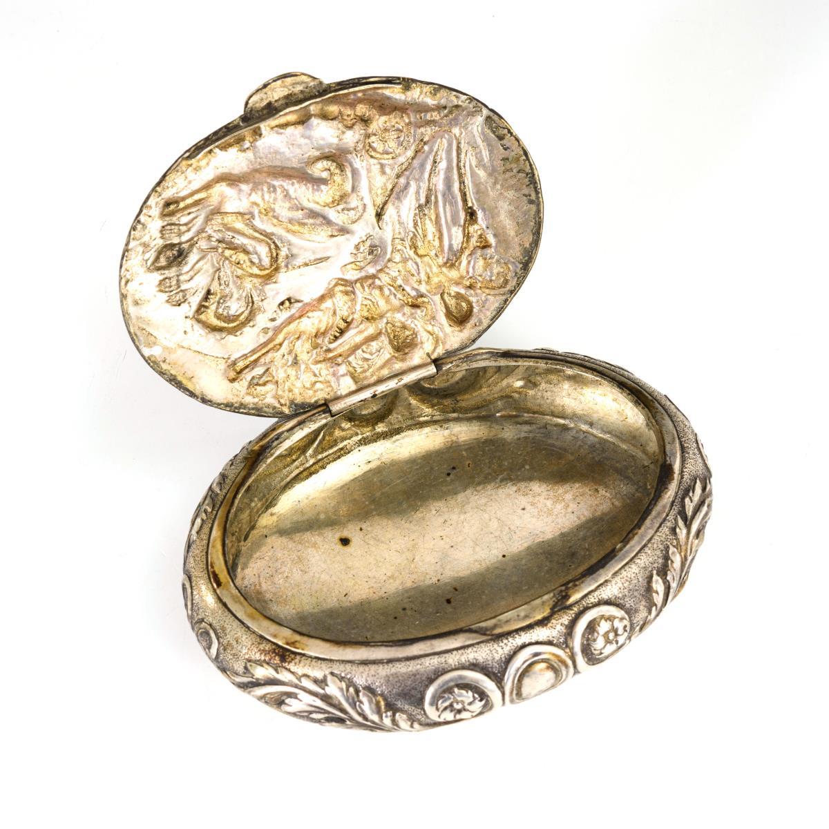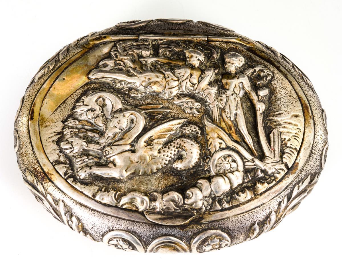 Silberdöschen mit mythologischem Relief.