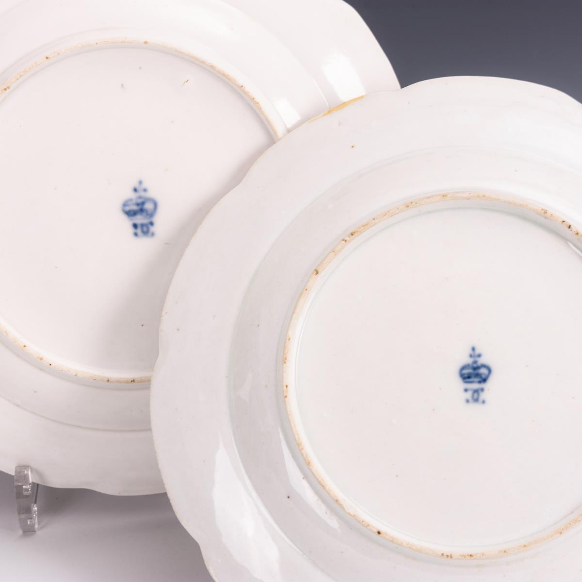 Speiseteller mit passiger Fahne. Rand berieben, 1x mit Randrestaurierung/-bestoßung.