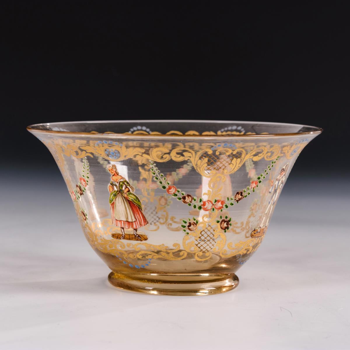 Farbloses Glas, polychrome Emailmalerei, Goldstaffage.