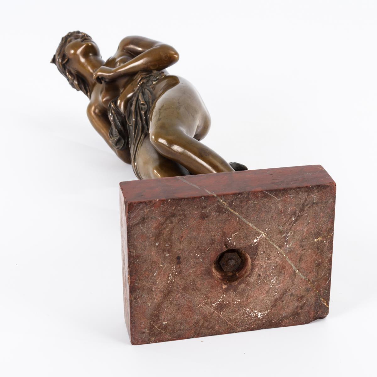 Bronze patiniert, roter Marmor-Sockel. Bezeichnet, Gießermarke "Akt=Ges=Gladenbeck Berlin". H 33 / 36 cm.