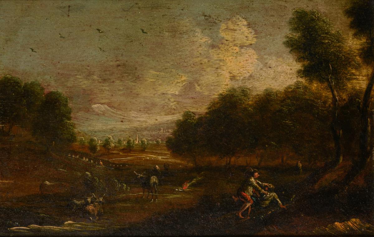 Landschaftsmaler 18. Jh.: Landschaft mit Vieh und zwei sich prügelnden Männern
