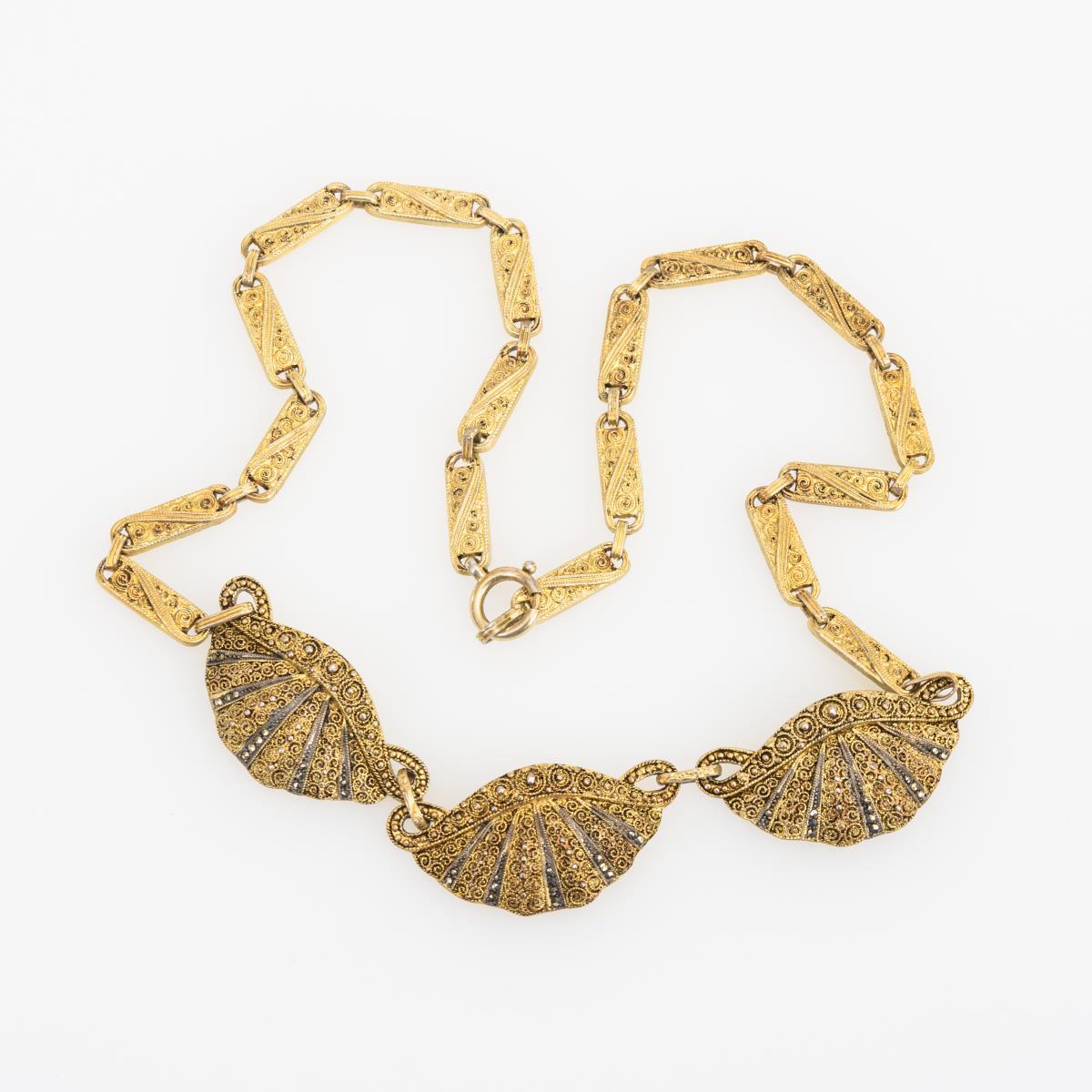 Collier mit Filigrandrahtdekor und Markasitenbesatz. Ringfederschließe.
