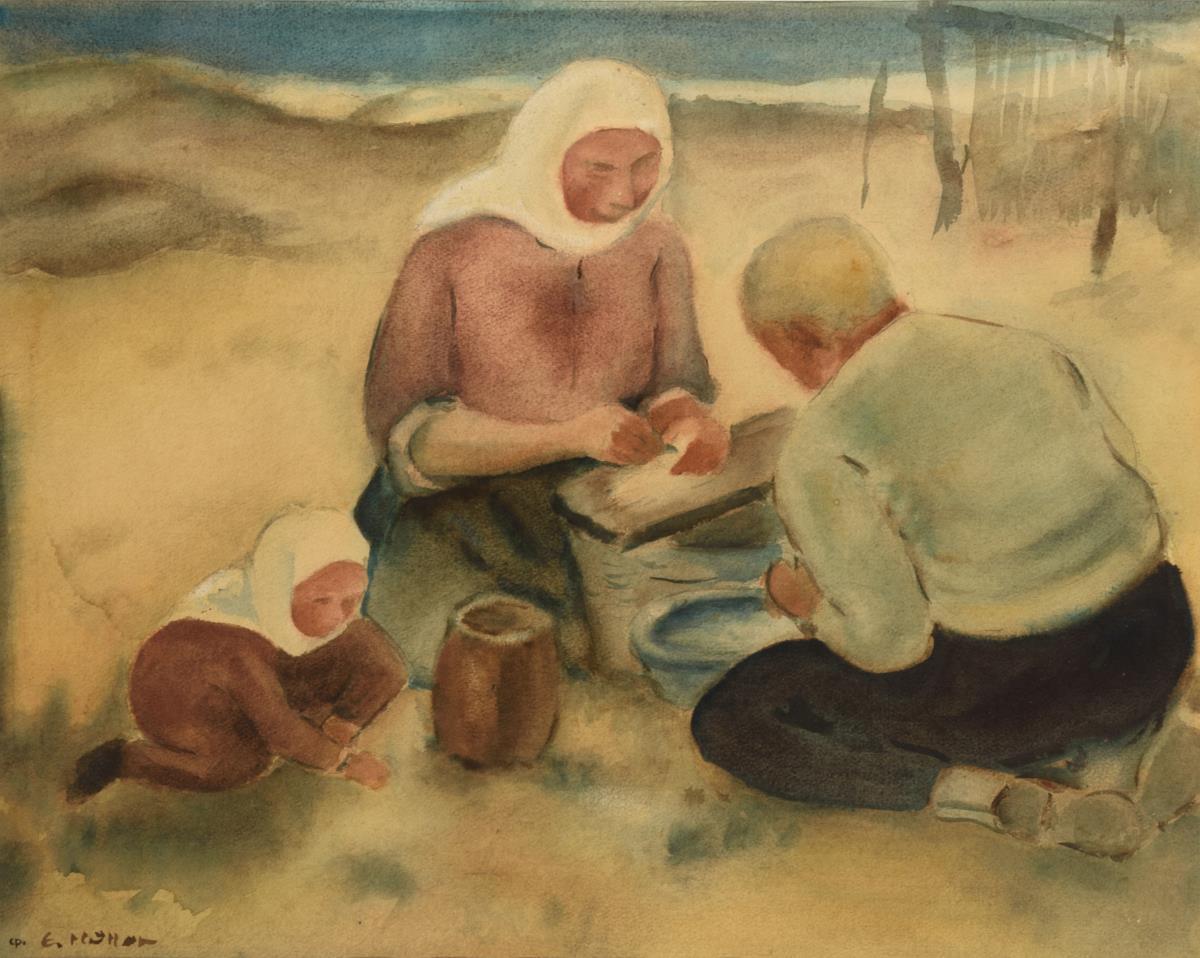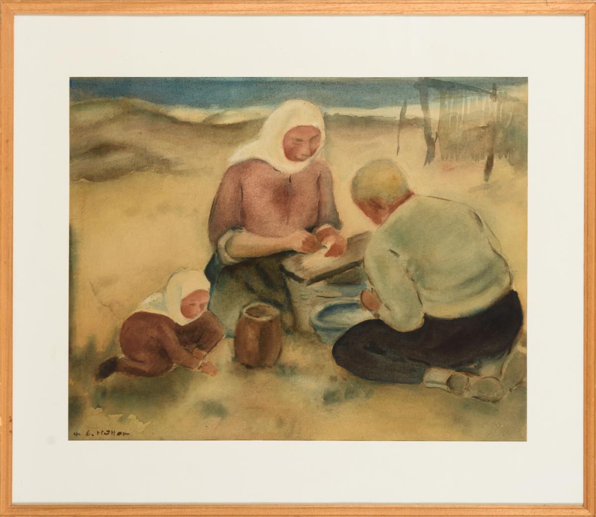 Passepartoutausschnitt 39 x 49 cm. Gerahmt: 56 x 64 cm.