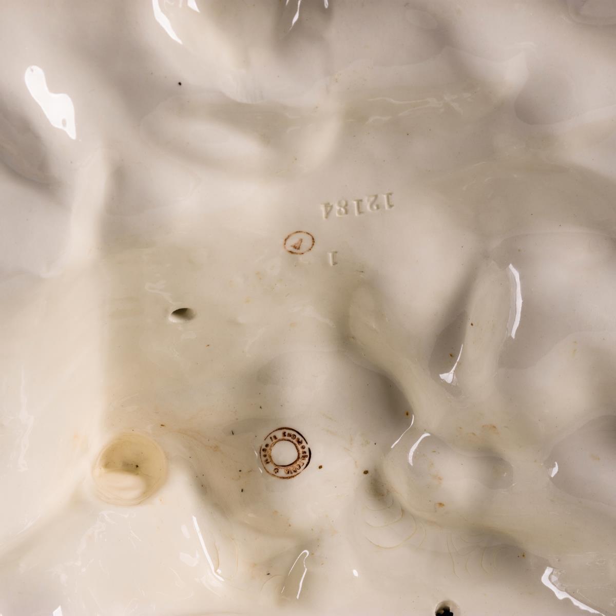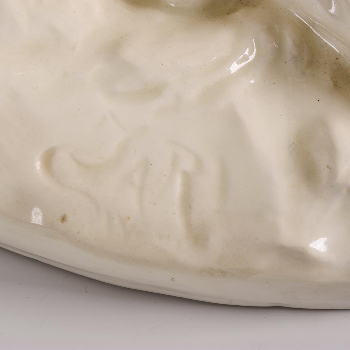 Steingut, weiß glasiert. H ca. 30 cm, L 57 cm.