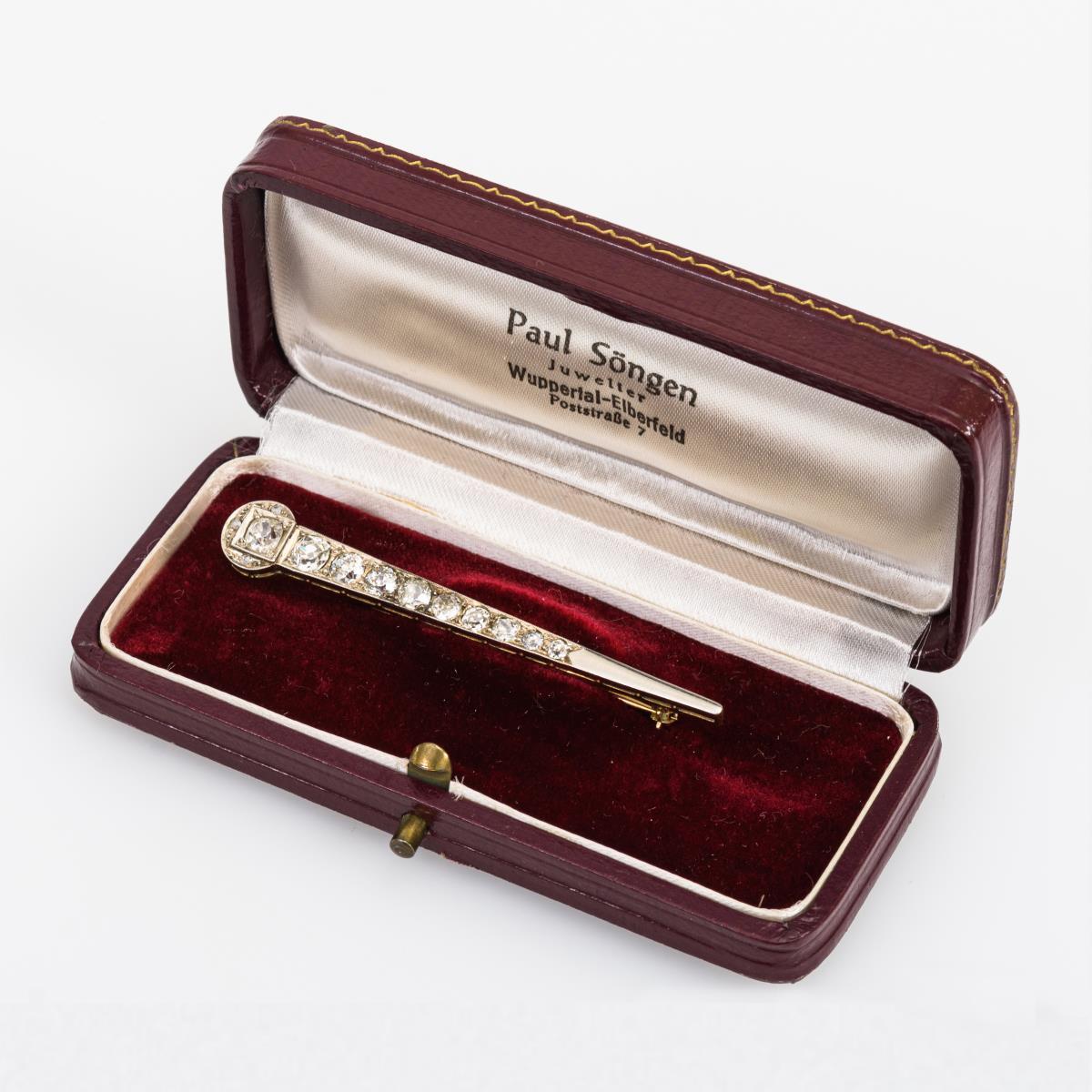 Art-déco-Nadel mit Altschliff-Brillanten und Diamantrosen.