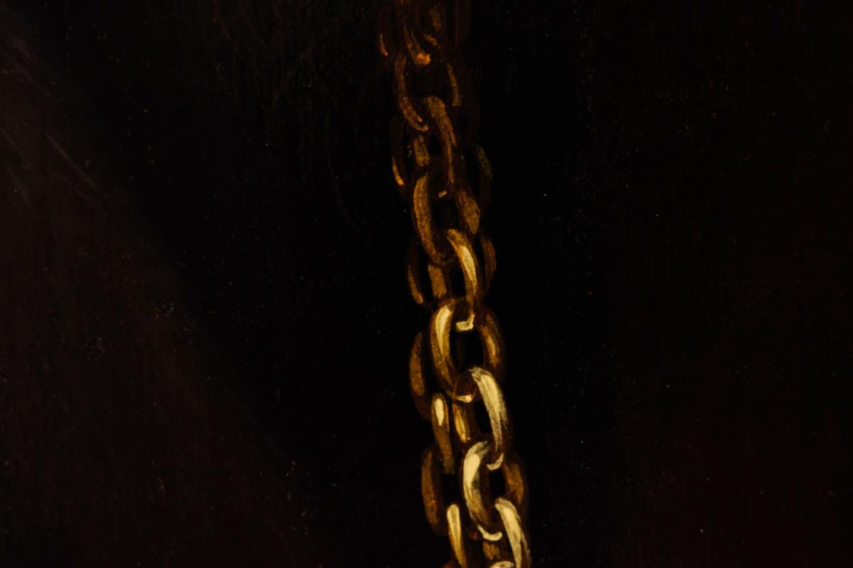 Qualitätvolles Bildnis des Nürnberger Arztes im pelzverbrämten Mantel mit goldener Kette, Ring und detailliert gemaltem Bart. Es handelt sich wohl um das Pendant zum Frauenbildnis Neufchâtels im Philadelphia Museum of Art, welches die Frau Heinrich Wolffs zeigt. Leinwand doubliert.