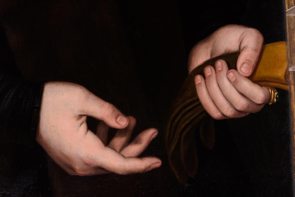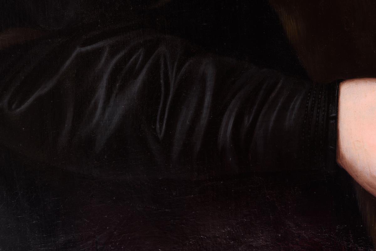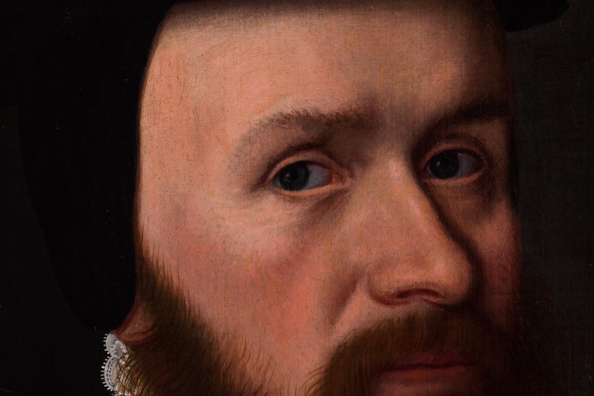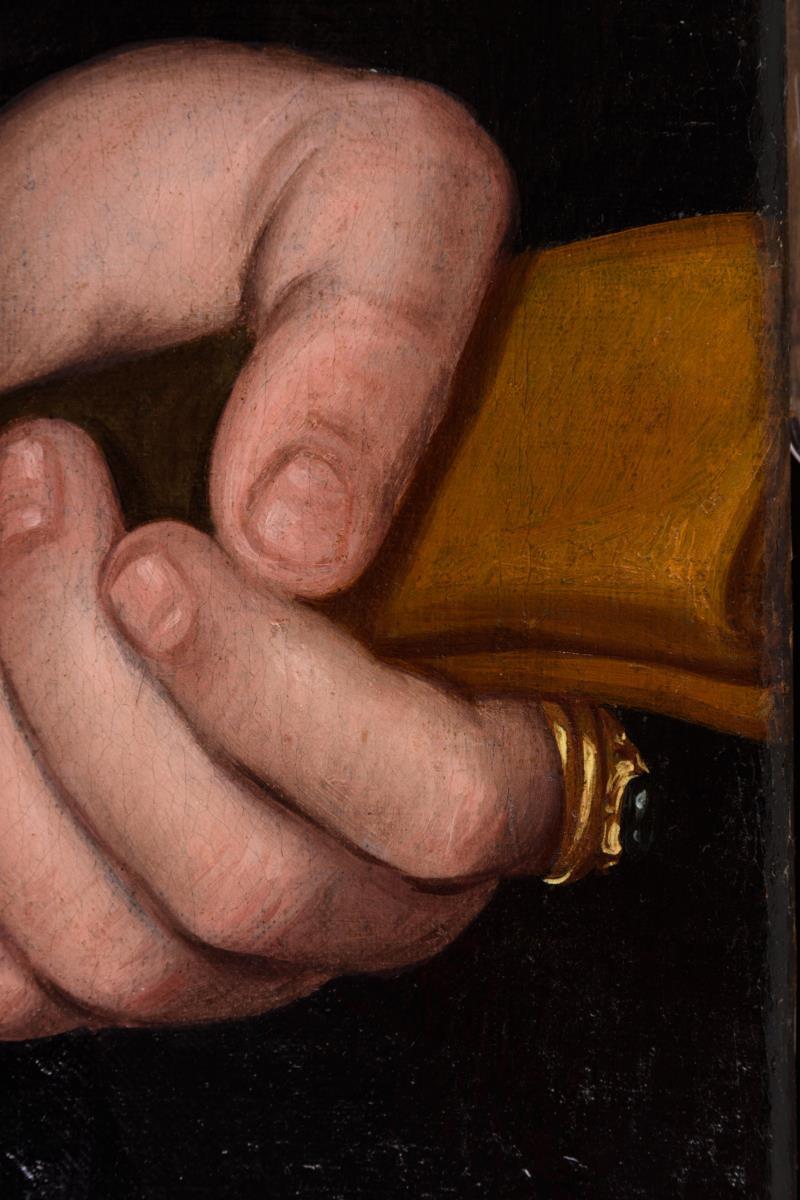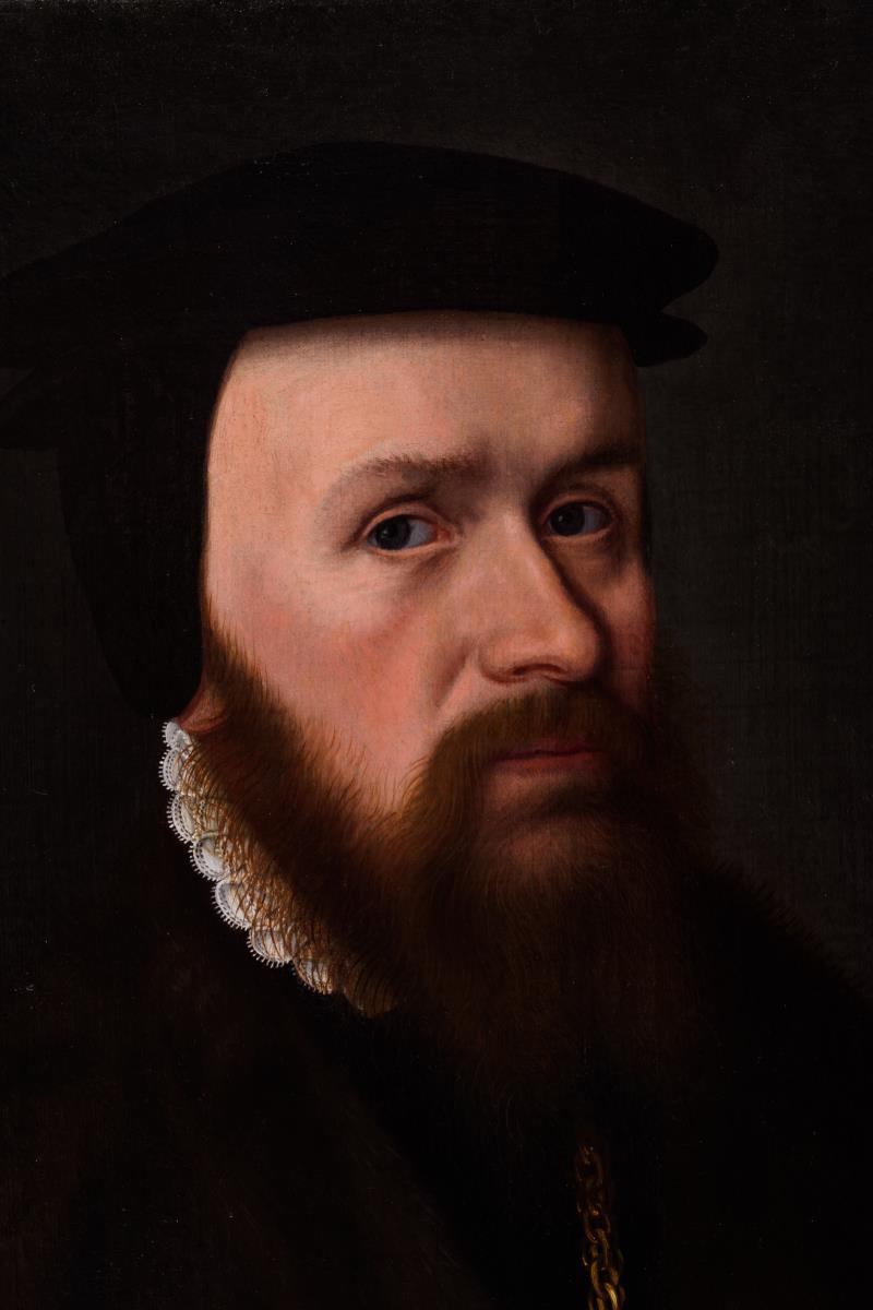 Nicolaus Neufchatel: Niederländischer Maler, Schüler P.C. van Aelst in Antwerpen seit 1539. Verließ die Niederlande als überzeugter Calvinist und kam 1561 über Umwege nach Nürnberg. Er etablierte sich im Nürnberger Patriziat schnell als beliebter Porträtmaler. Seit 1793 verliert sich seine Spur. Bei diesem Portrait handelt es sich um eine spannende (Wieder-)Entdeckung: Hinweise auf das Portrait und den Maler gibt es in schriftlicher Form schon ein Jahr nach der Entstehung durch den Briefwechseln des Dargestellten mit seinem Bruder. Der porträtierte Heinrich Wolff war einst ein bekannter Nürnberger Alchemist, der mit wichtigen Persönlichkeiten seiner Zeit wie Nostradamus im Austausch stand. Das Gemälde verweilte seit seinem Ankauf in die Zähringer Bildnissammlung und wurde 1693 im Sammlungsbestand der Markgrafen zu Baden-Baden belegt. Aufgrund der starken Übermalung und einer falschen Zuschreibung (auf die Doublierleinwand wurde der falsche Name übertragen) kam es auf den Kunstmarkt. Hier kauften es 2003 die derzeitigen Eigentümer. Nach intensiven Recherchen sowie technischen und stilistischen Analysen, u.a. in Zusammenarbeit mit dem Deutschen Germanischen Museum und dem Verfasser der Dissertation über den Porträtierten, Dr. Wolfram Brechtold, konnte das Gemälde dem bekannten Altmeister Nicolaus Neufchâtel zugeordnet werden. Dank der fachgerechten Restauration und Abtragung der früheren Übermalung erscheint nun die hohe Qualität und Pinselführung des Künstlers wieder in voller Geltung. Wolffs Schriftwechsel mit Berichten zum Auftragshonorar an Neufchâtel sowie seine Korrespondenzen mit Nostradamus sind im Stadtarchiv Nürnberg erhalten. Noch heute sind die Grabstätten von Dr. Heinrich Wolff und seiner Ehefrau Rosina Wolff auf dem Johannesfriedhof zu Nürnberg vorzufinden. Ein vollständiger Restaurierungsbericht, die detaillierte Geschichte der Wiederentdeckung & Provenienz (inkl. einiger Schriftwechsel), sowie Fachliteratur und Röntgenaufnahmen des Gemäldes sind verfügbar und können bei Interesse eingesehen werden. Über diesen Link sind Informationen zur Restaurierung abrufbar (Stand 08.10.2020) https://kunstkonservierung.de/restaurierung/leinwand/gemaelderestaurierung/.