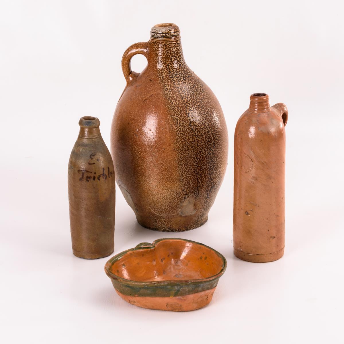 Steinzeug, Irdenware, teils salzglasiert und farbig bemalt. H max. 37,5 cm.