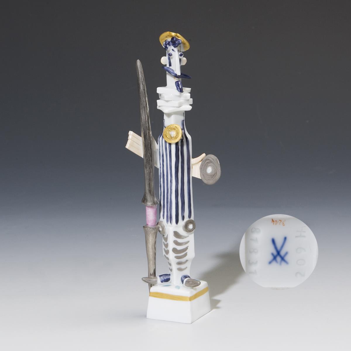 Modelll von Peter Strang 1998. Farbig bemalt, gold staffiert. Pressmarken, Malermarke, Künstler-Signet, Schwertermarke. Eine Fingerspitze minimal bestoßen, eine Hand restauriert.